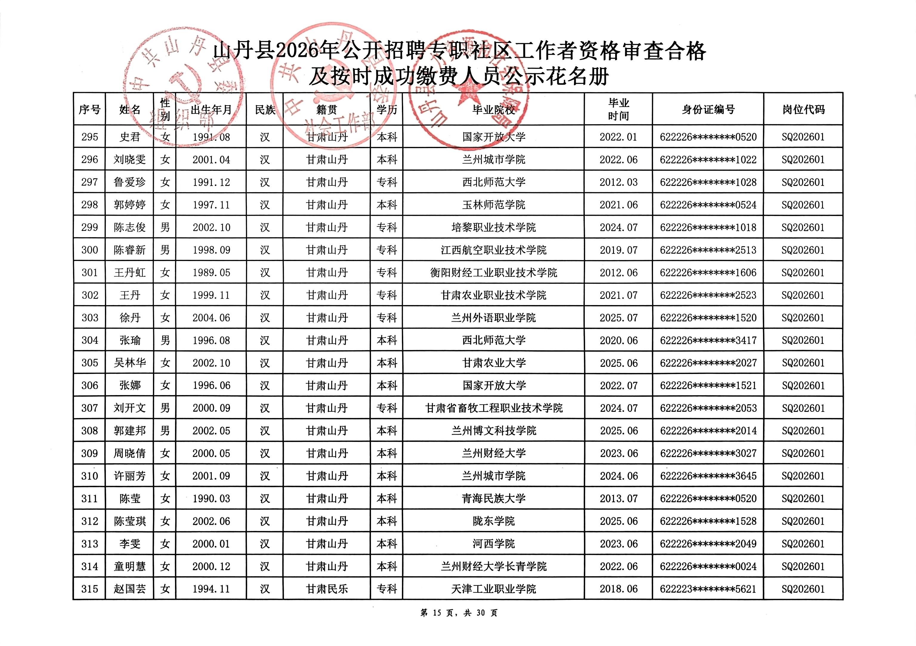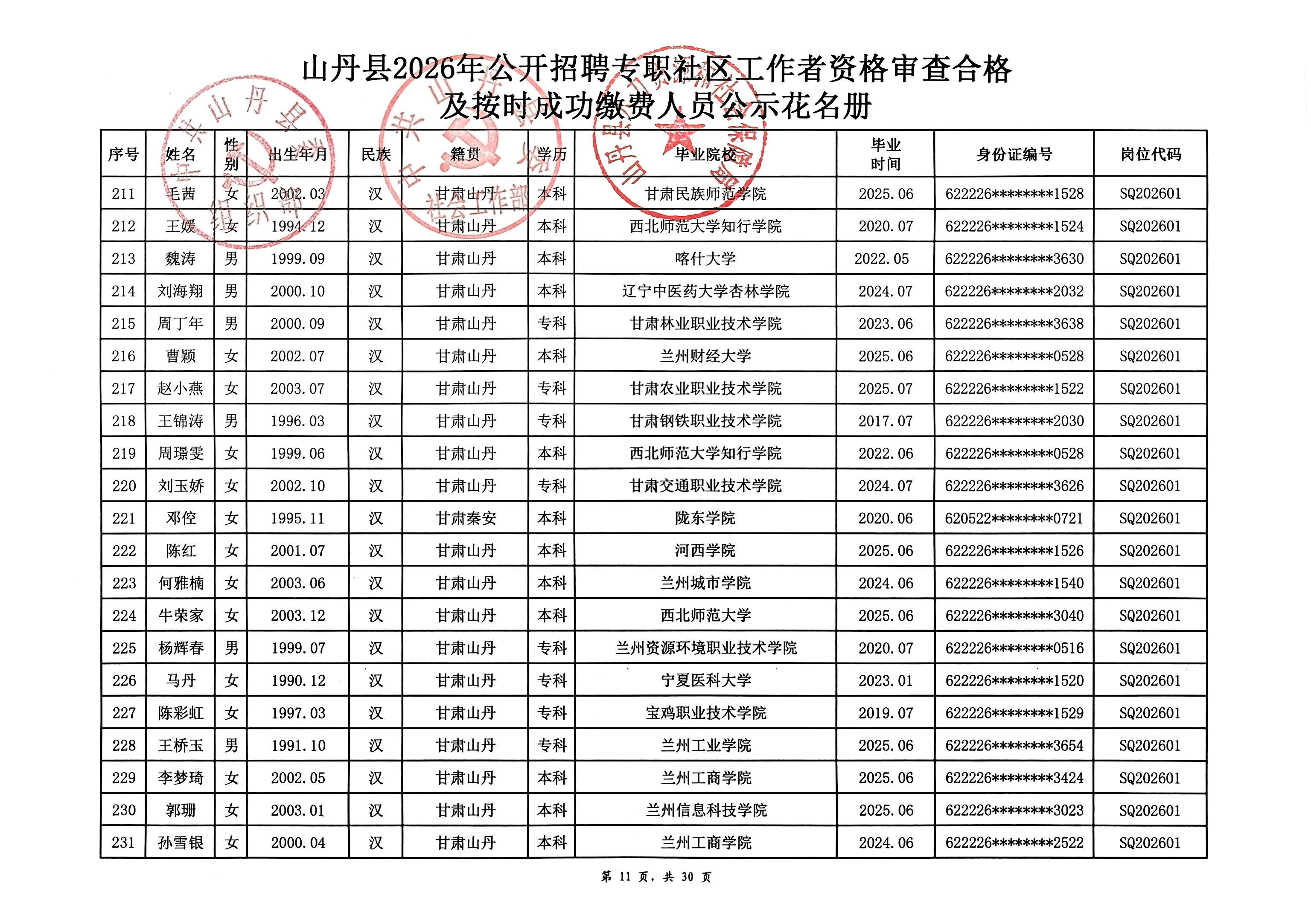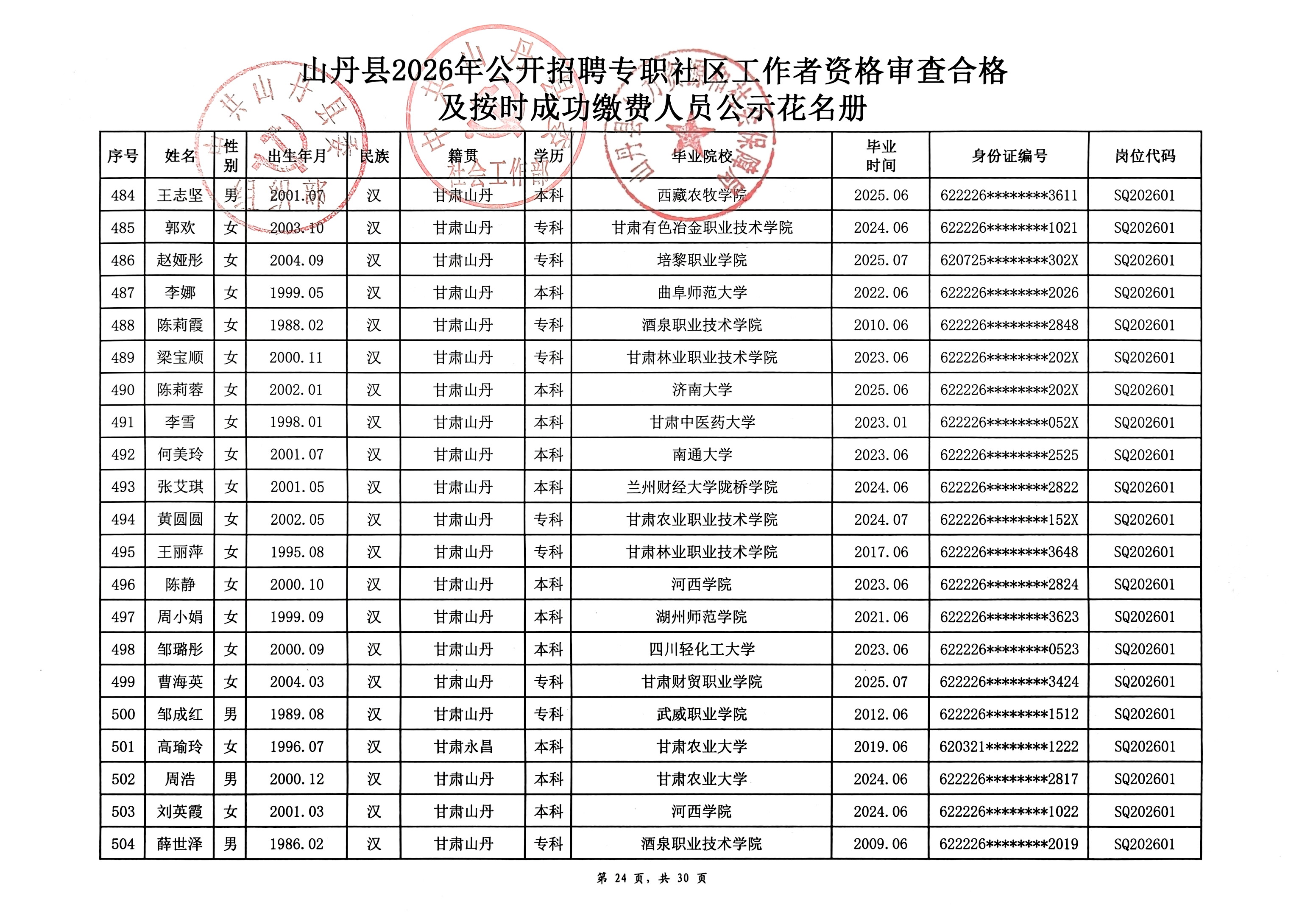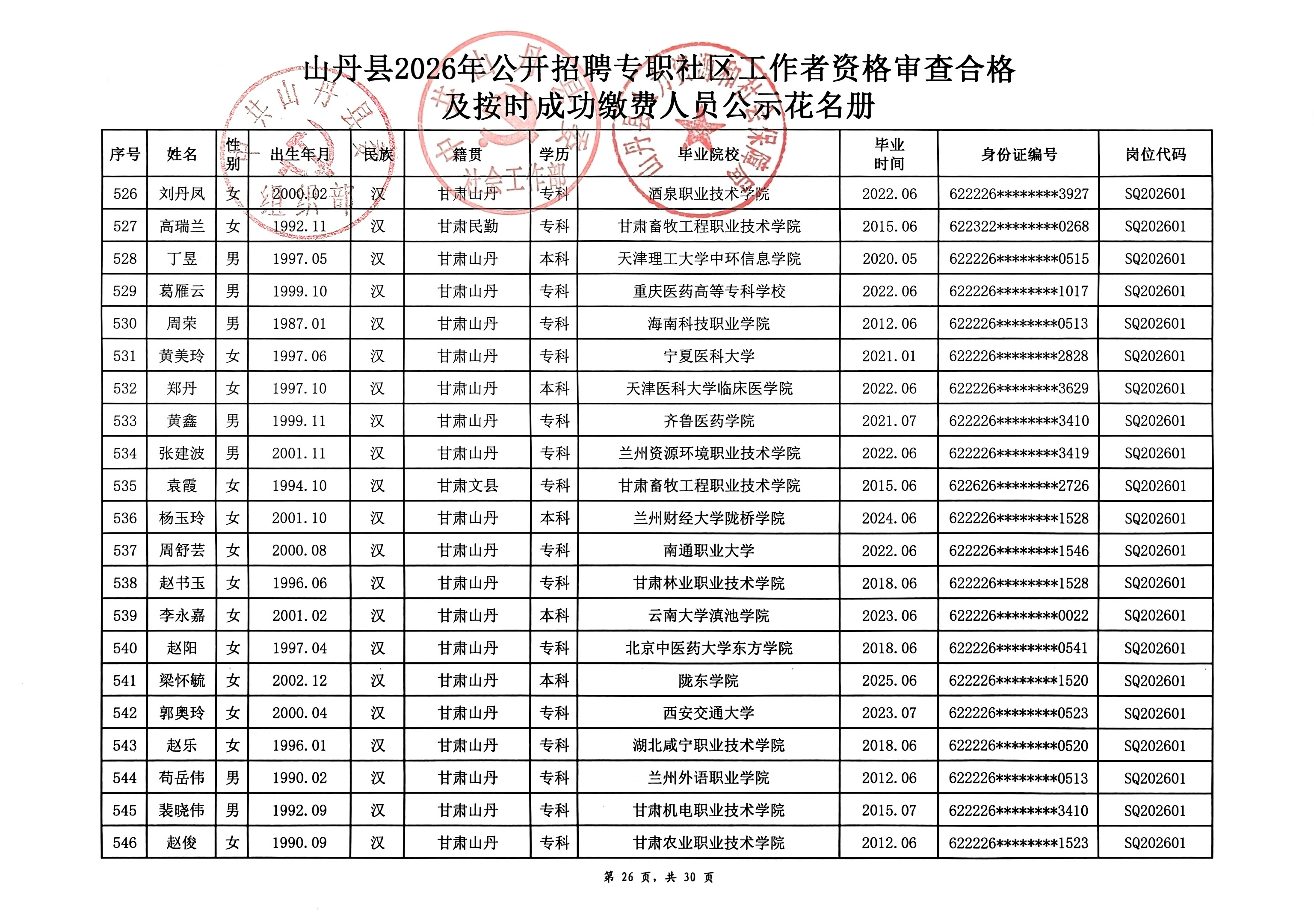山丹县2026年公开招聘专职社区工作者公告(二)