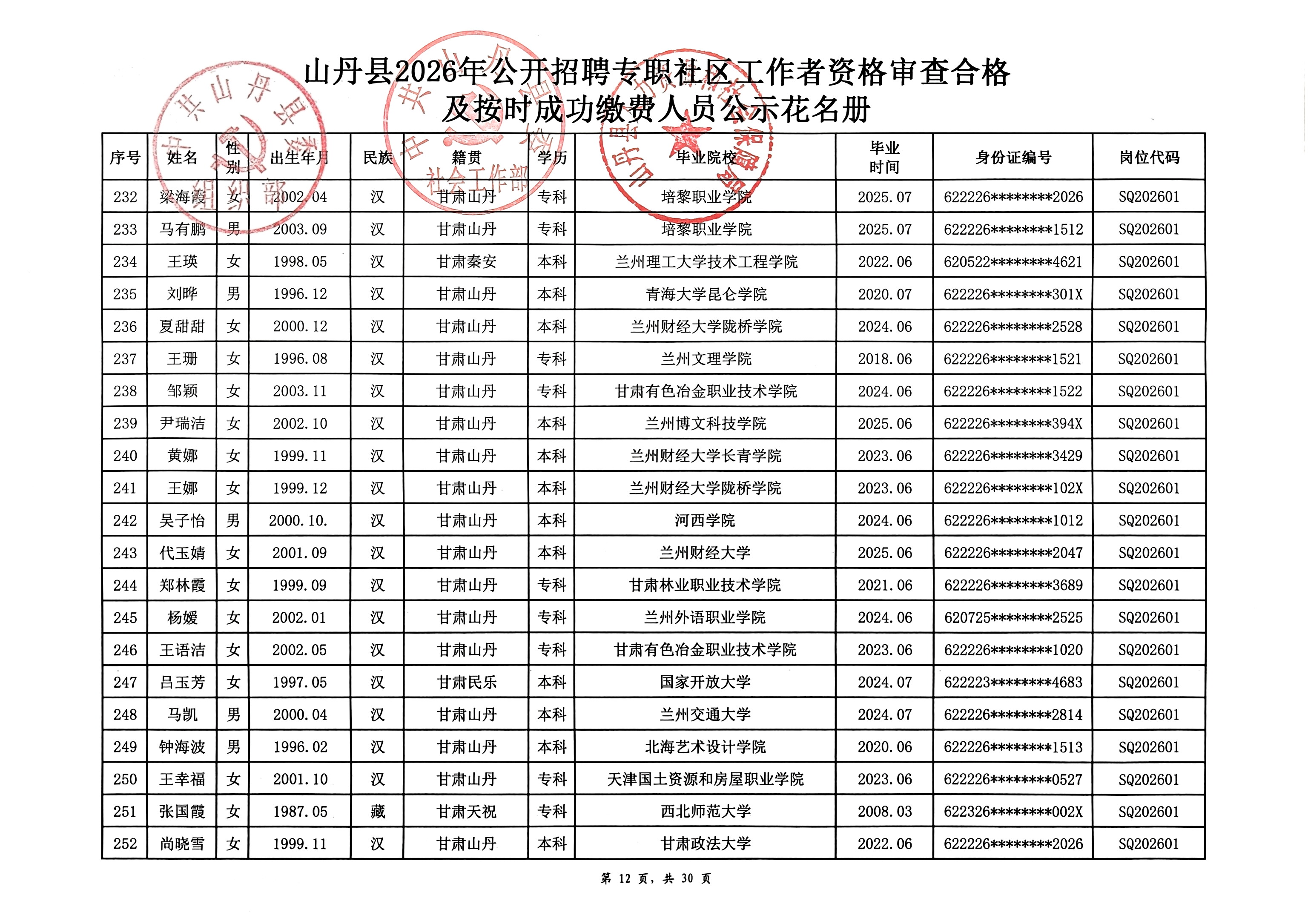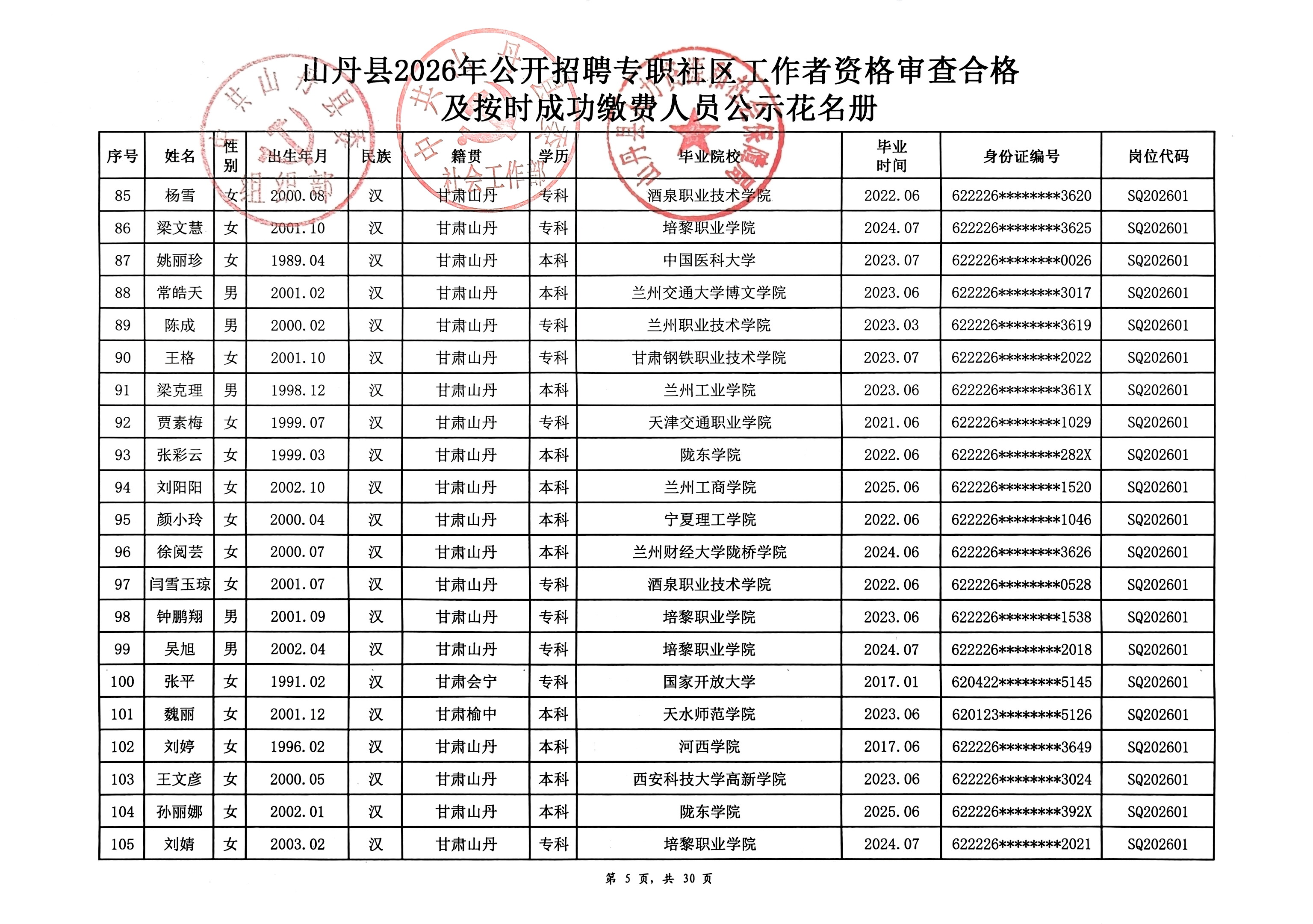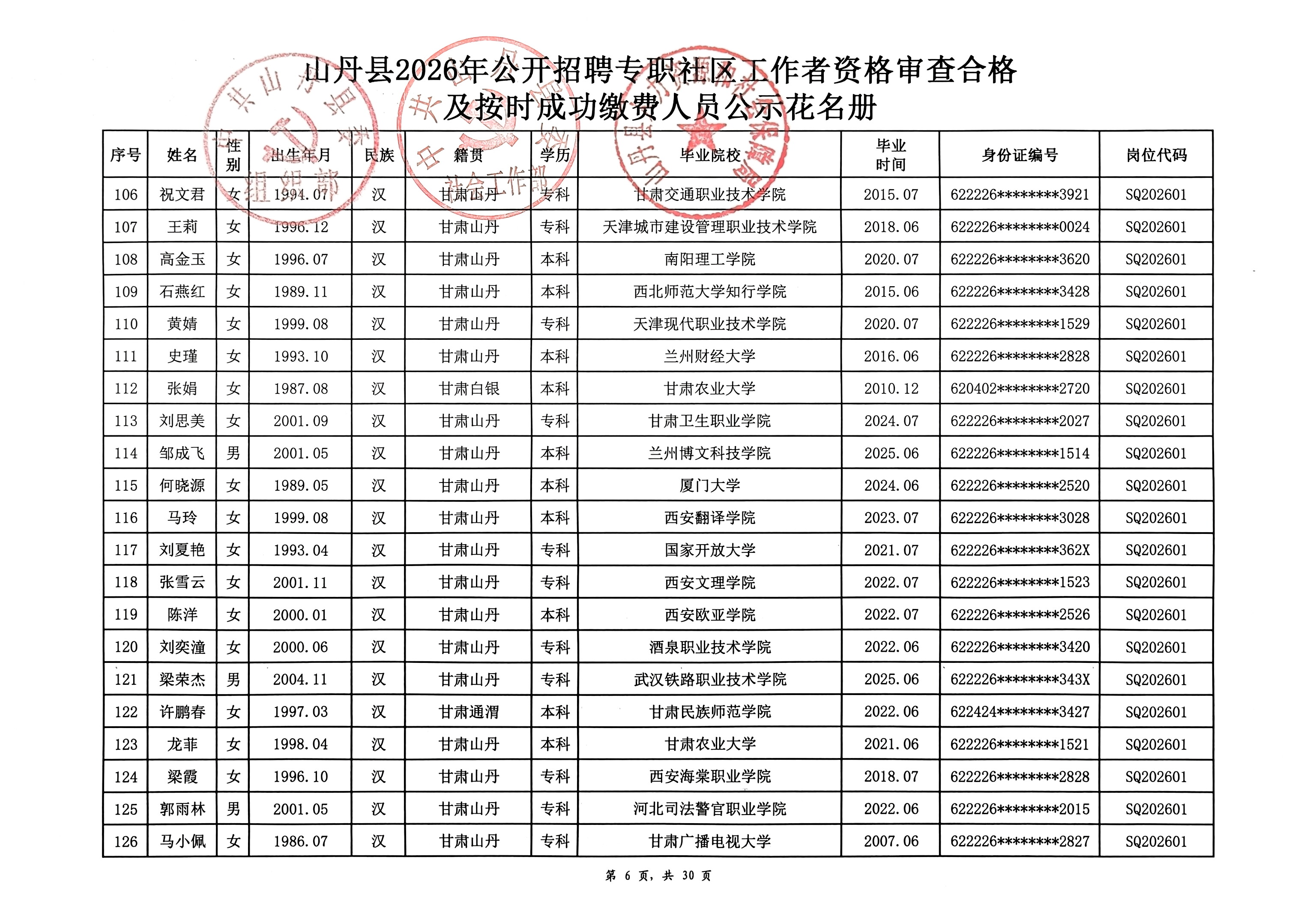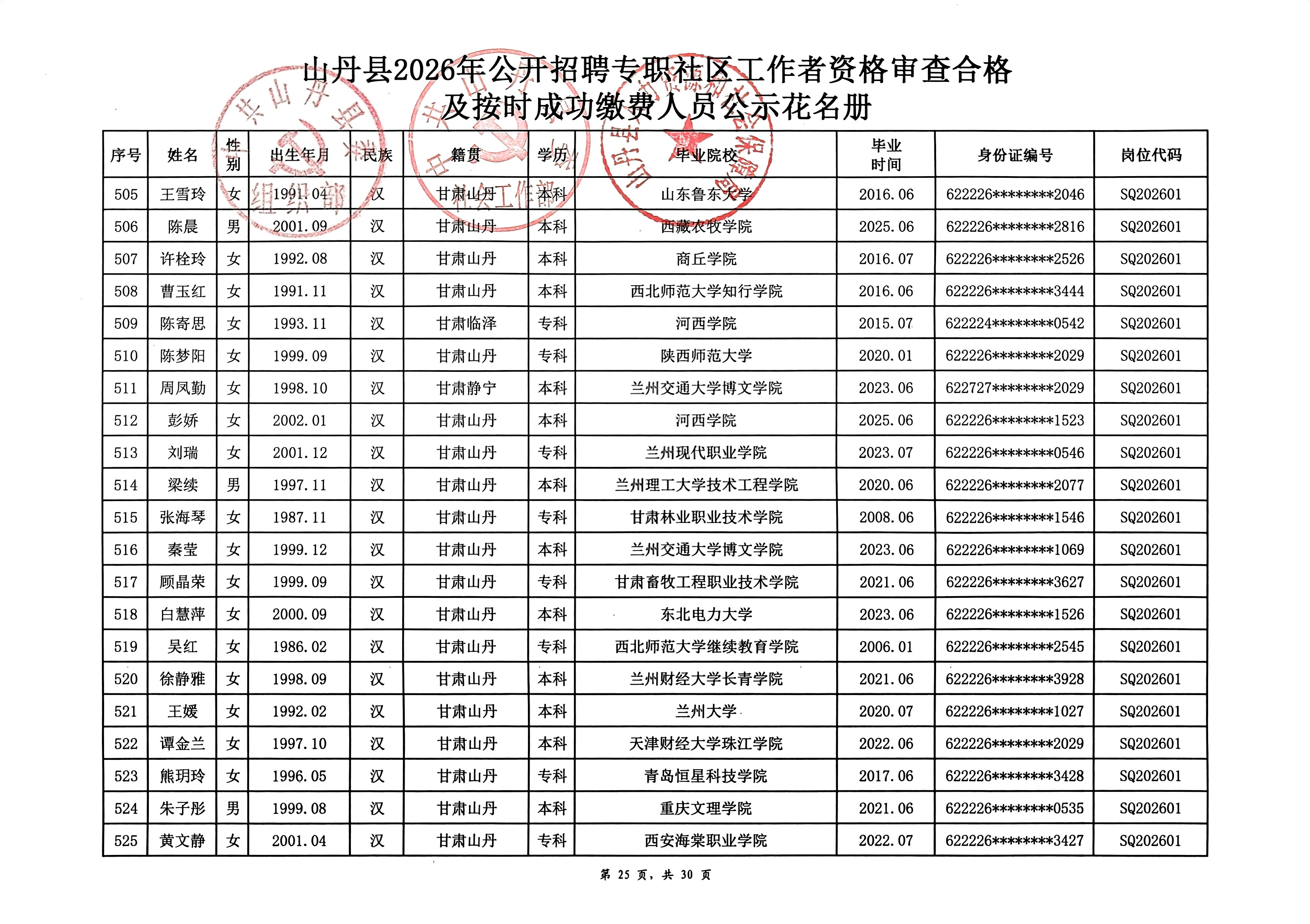 山丹县2026年公开招聘专职社区工作者公告(二)