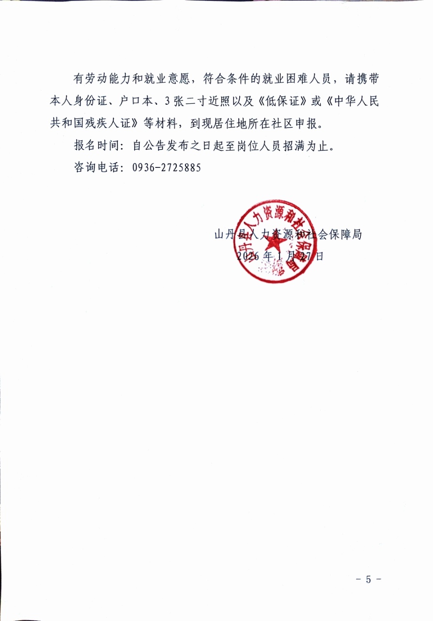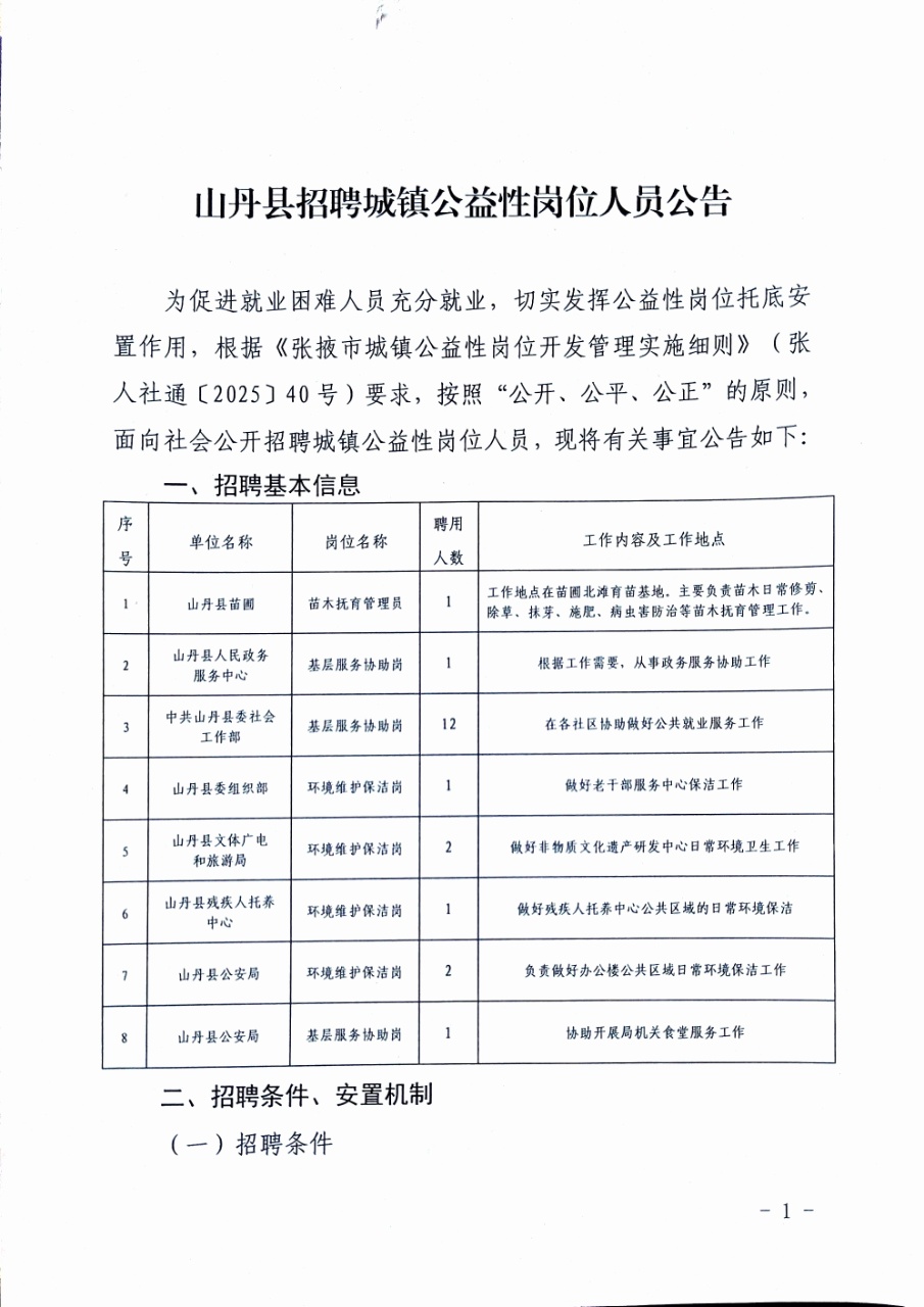 山丹县招聘城镇公益性岗位人员公告