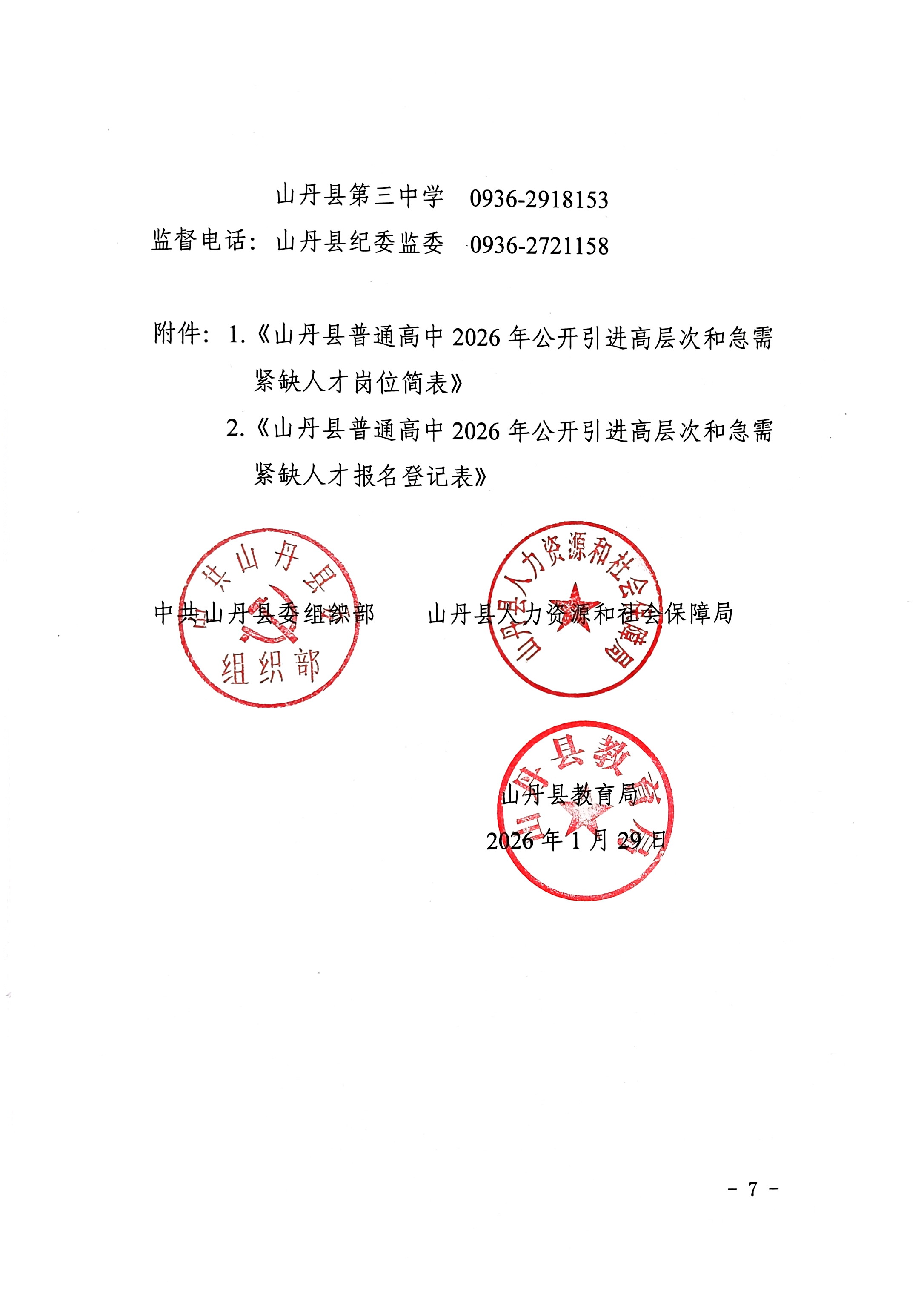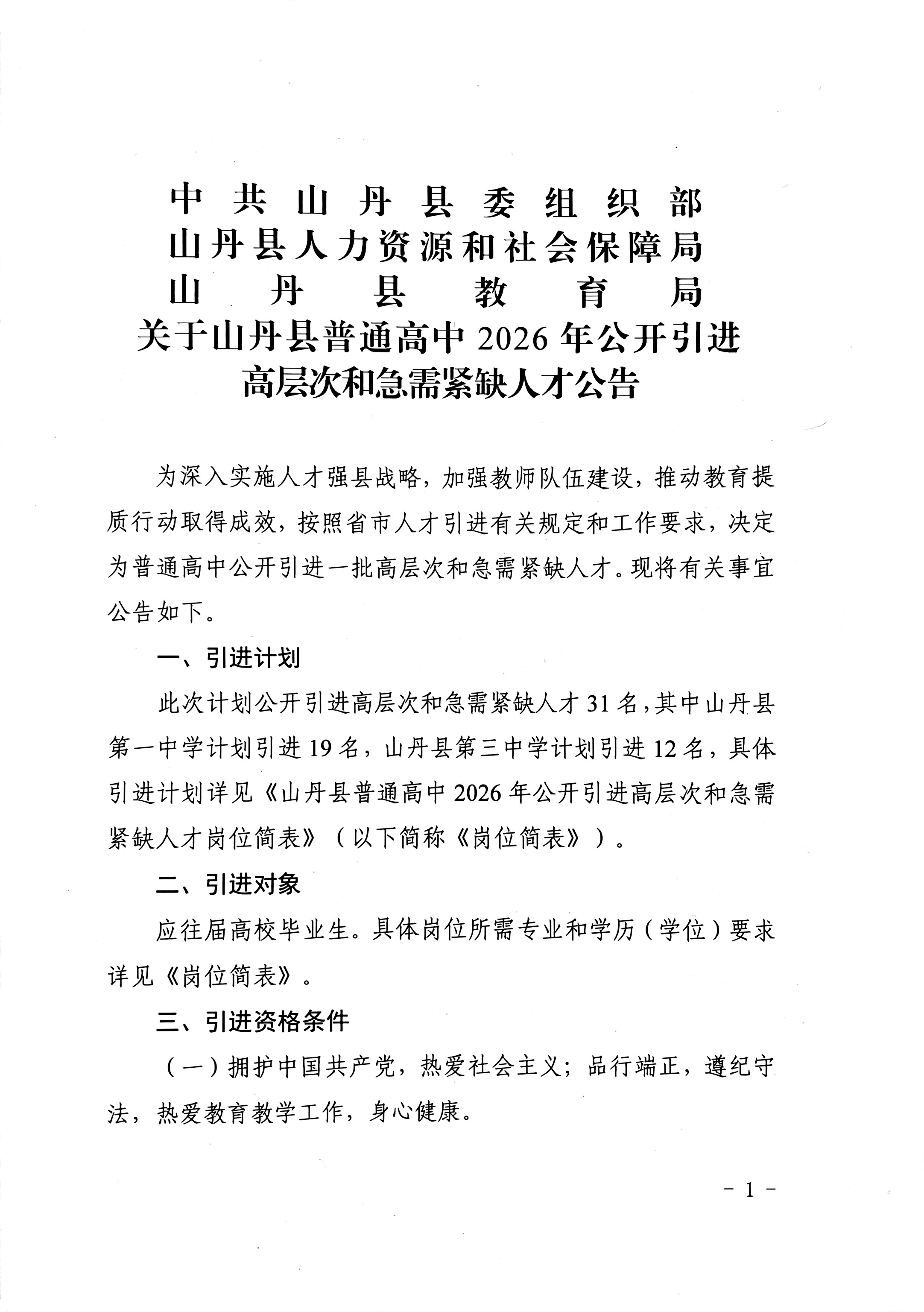 关于山丹县普通高中2026年公开引进高层次和急需紧缺人才公告