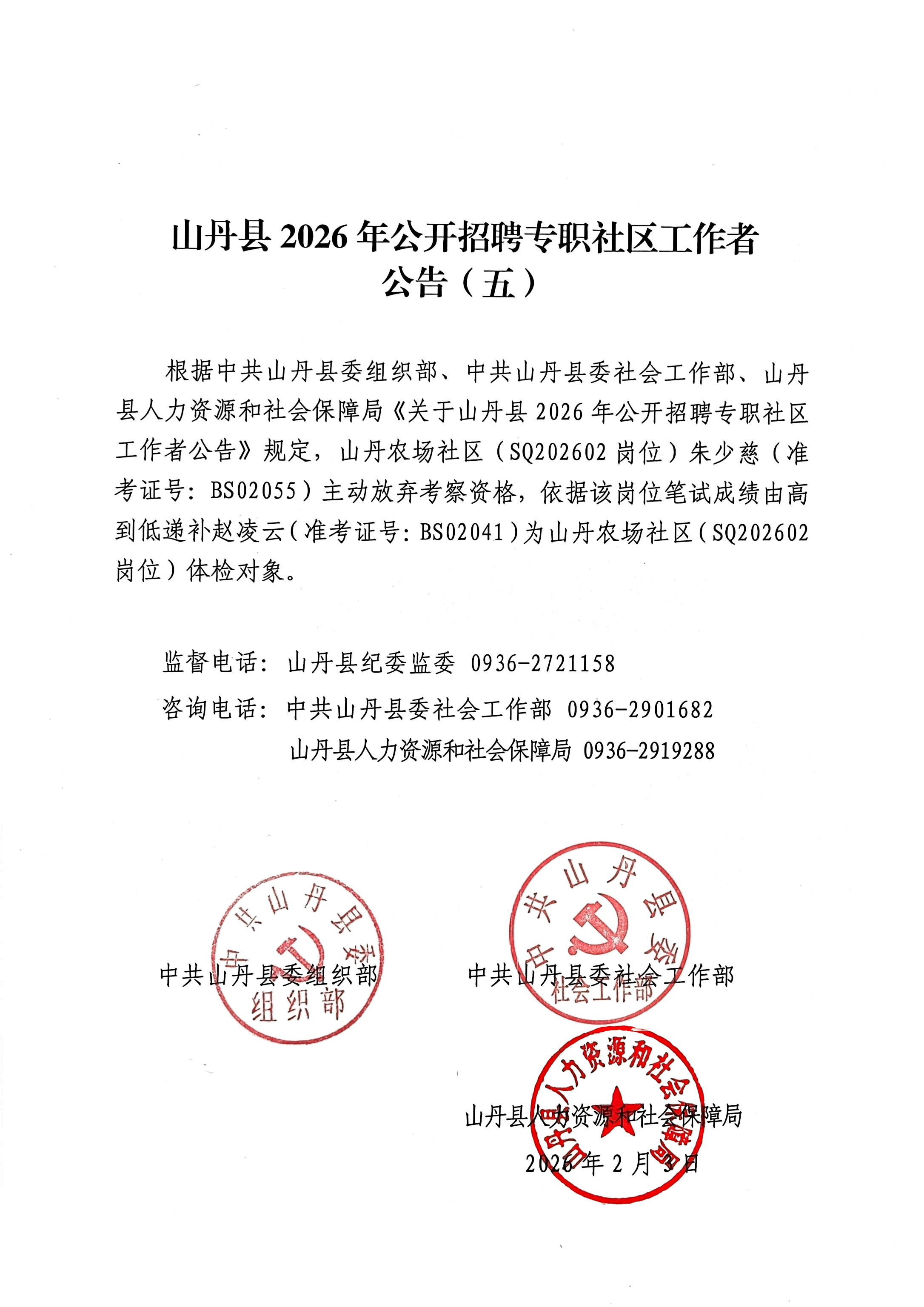 山丹县2026年公开招聘专职社区工作者公告(五)