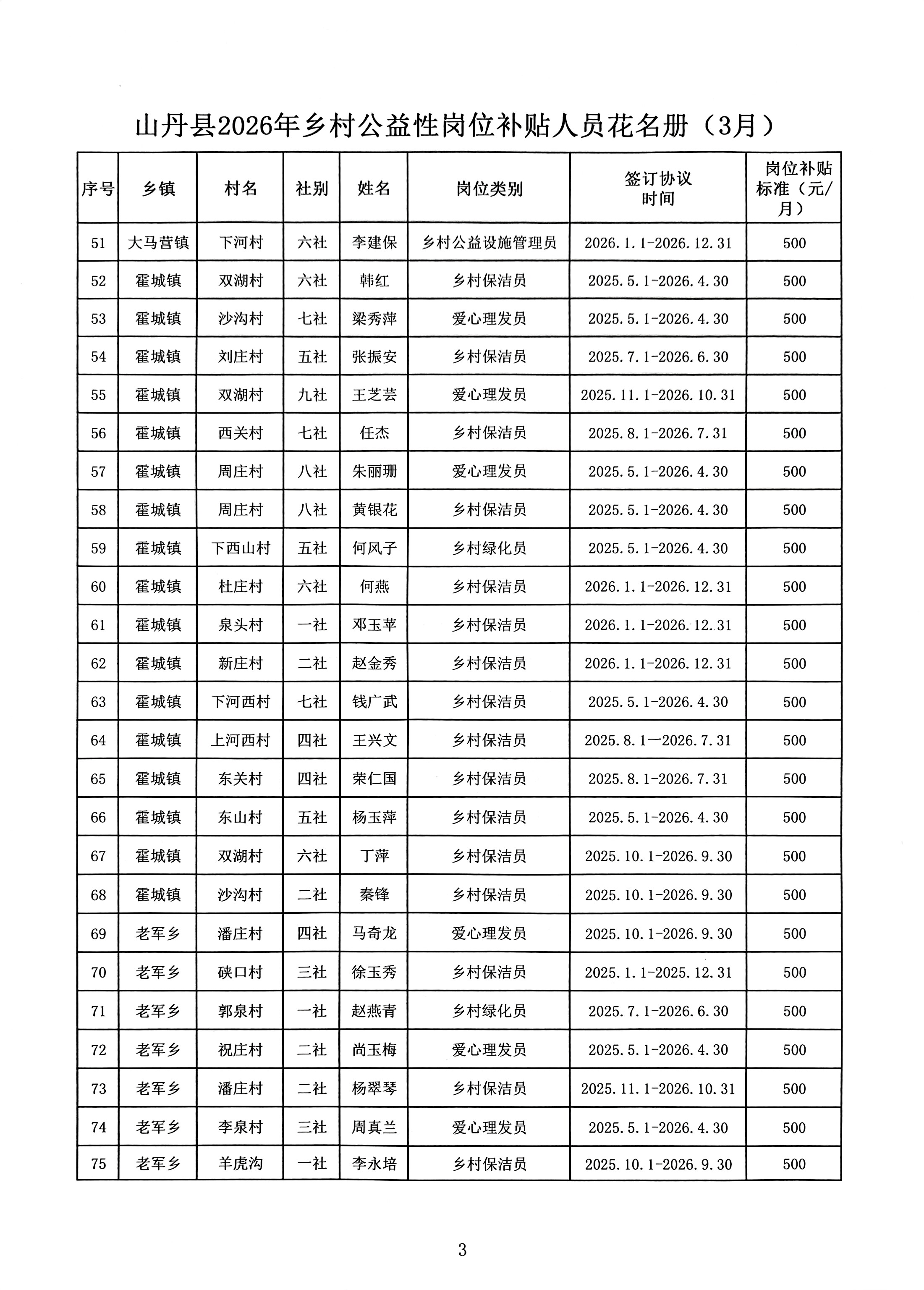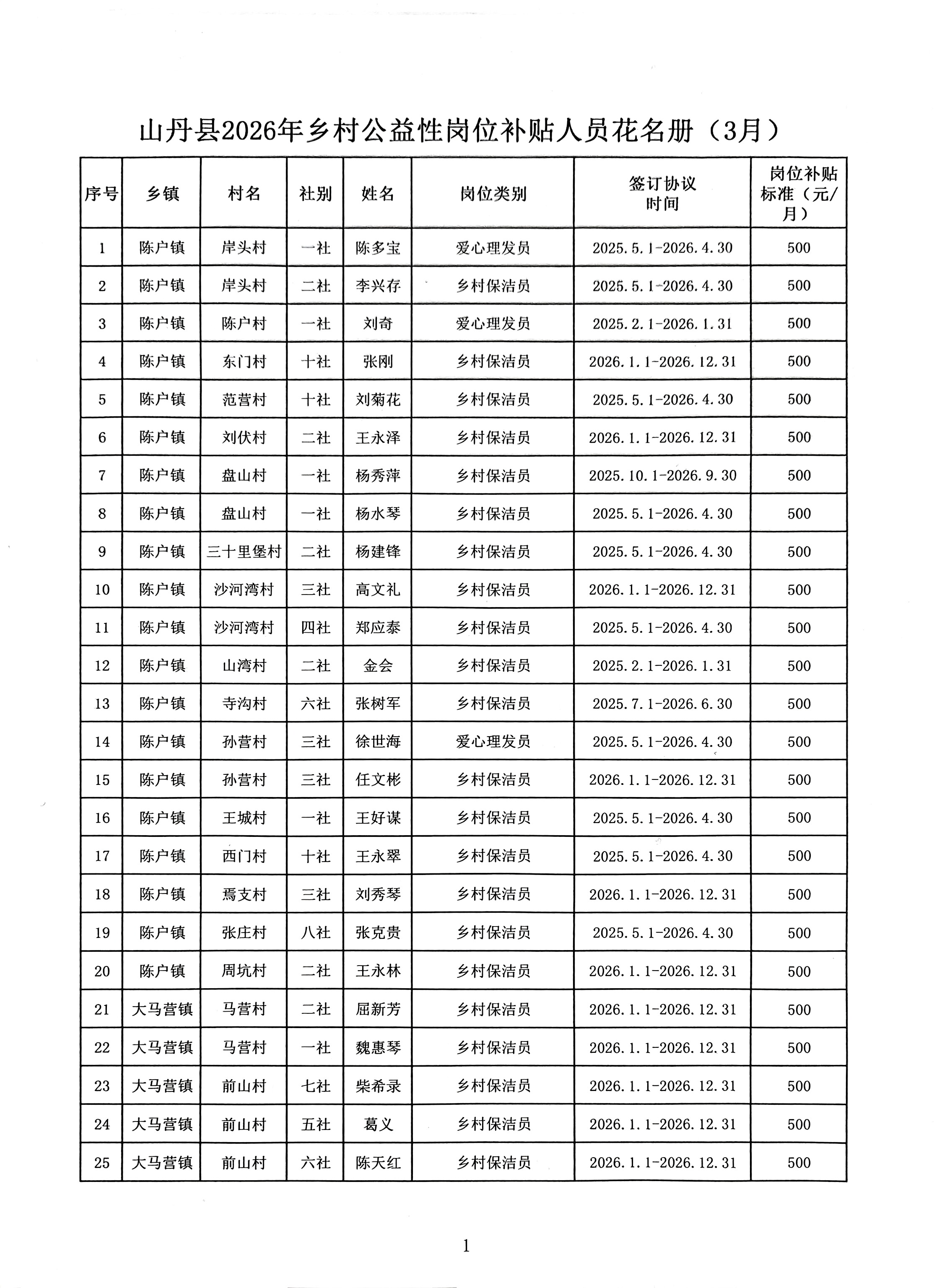 山丹县2026年乡村公益性岗位(爱心理发员等岗位)补贴情况公示