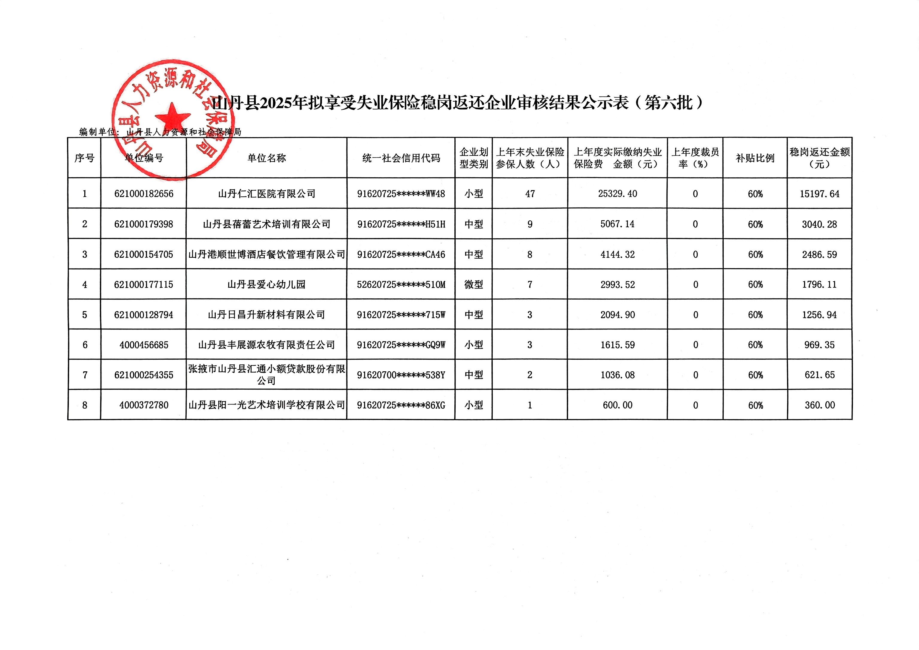 关于2025年拟享受失业保险稳岗返还政策企业资格审核结果的公示(第六批)