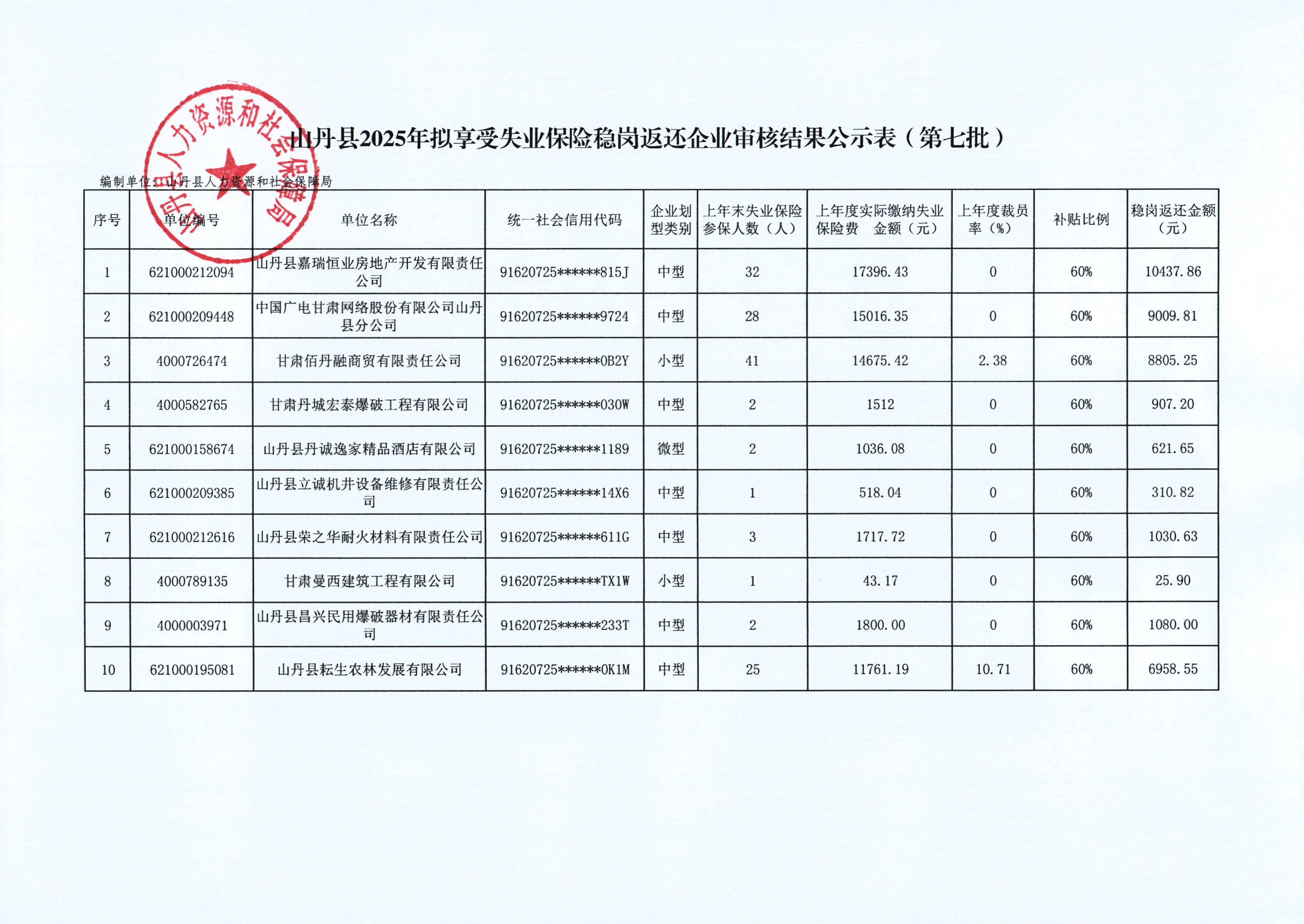 关于2025年拟享受失业保险稳岗返还政策企业资格审核结果的公示(第七批)