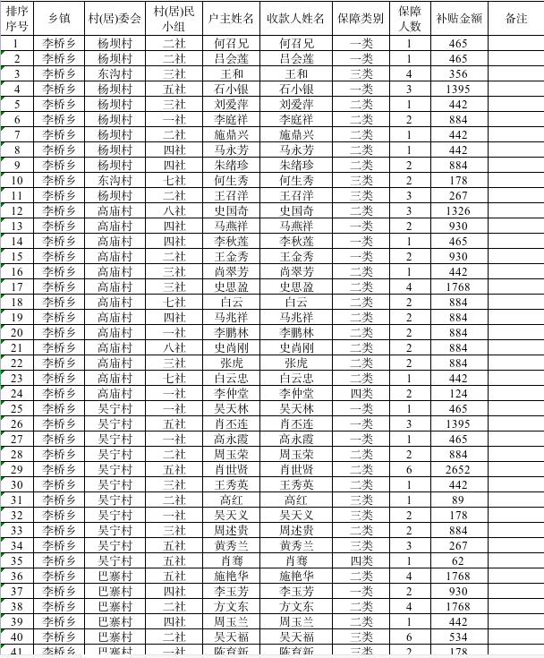 2025年8月农村低保政务公开花名册.xls