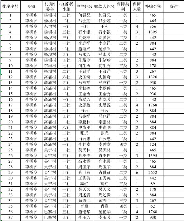 山丹县2025年10月农村居民最低生活保障发放花名册