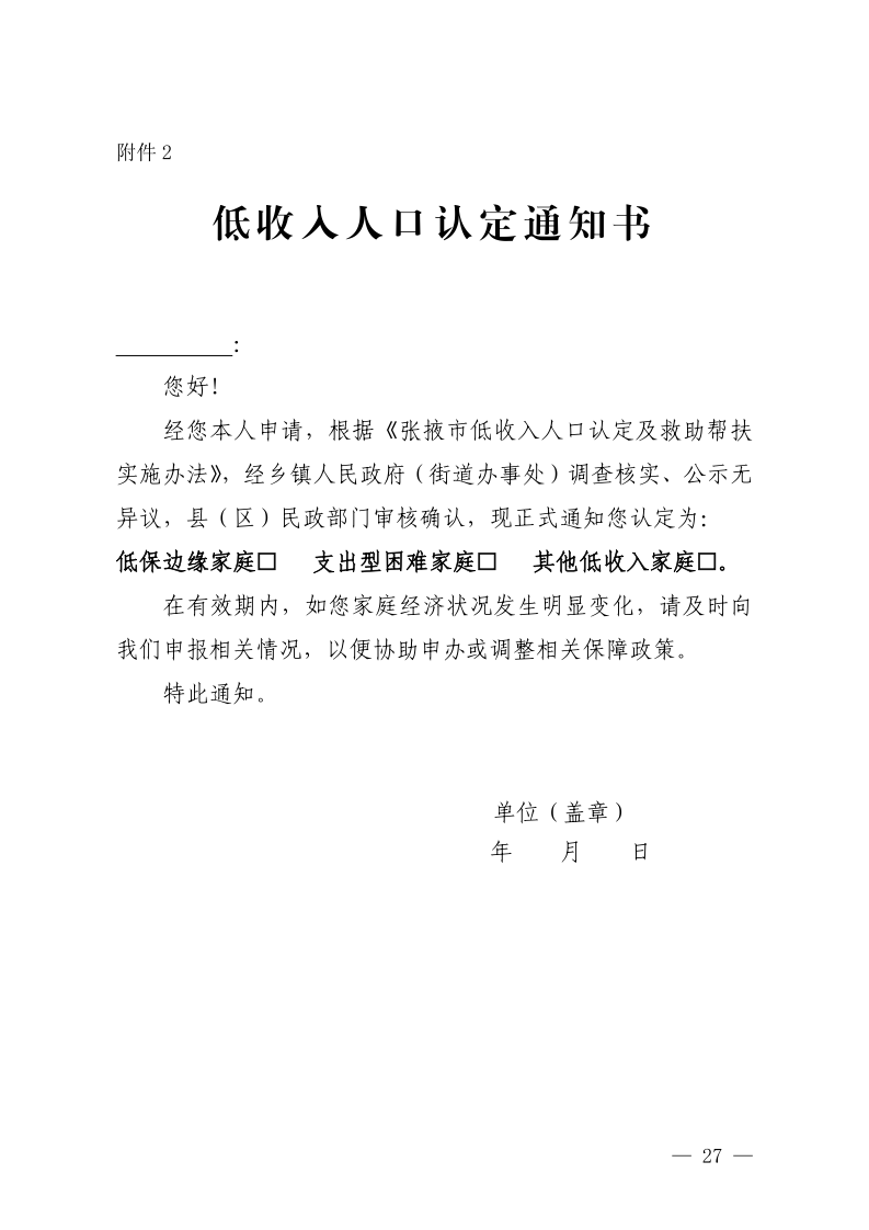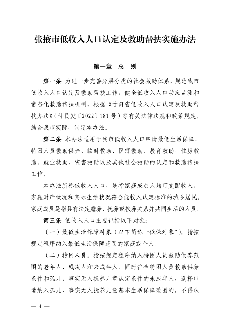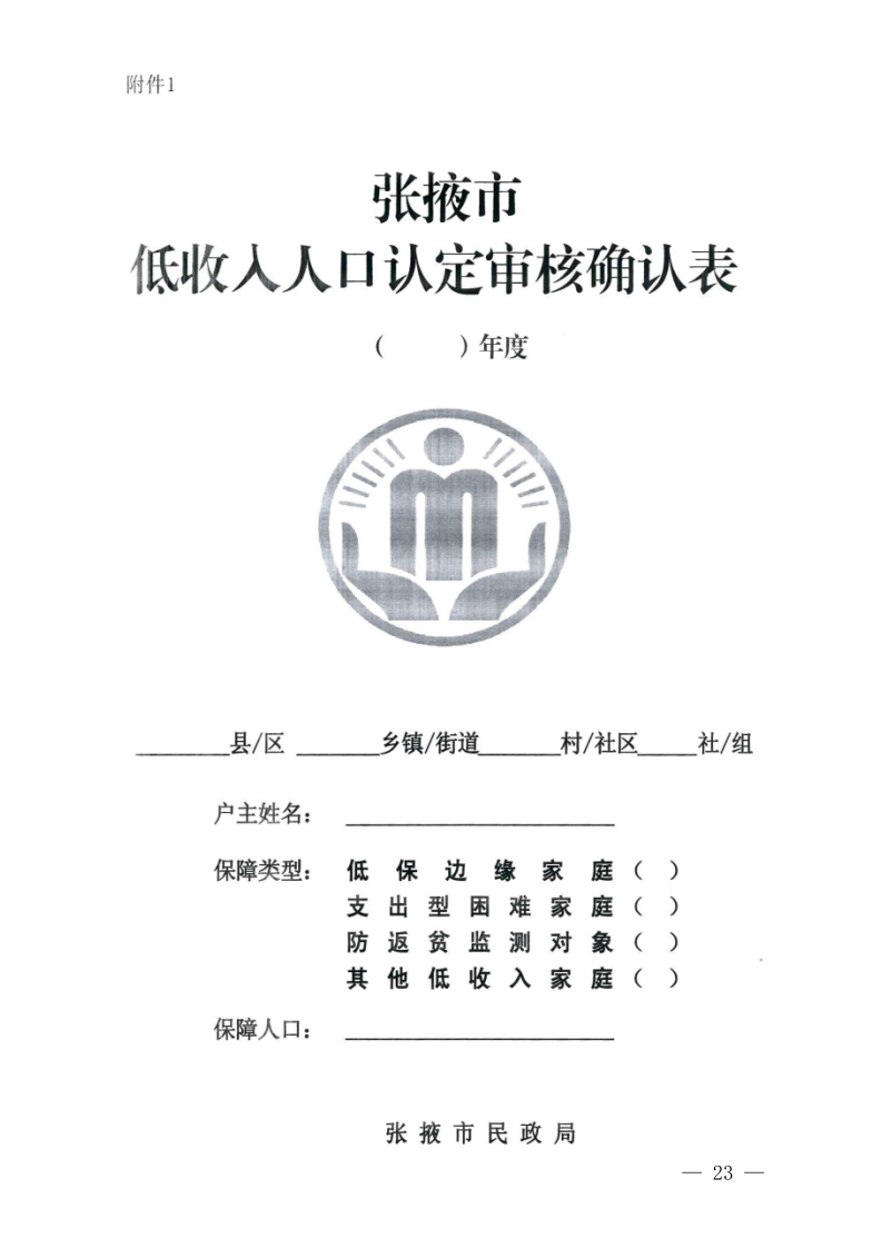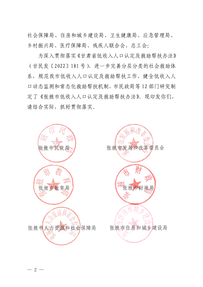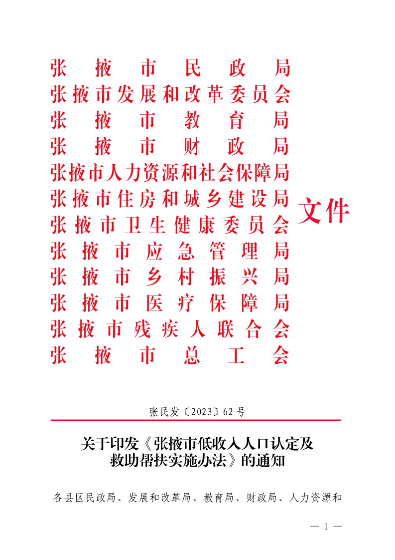 张民发〔2023〕62号关于印发《张掖市低收入人口认定及救助帮扶实施办法》的通知.pdf