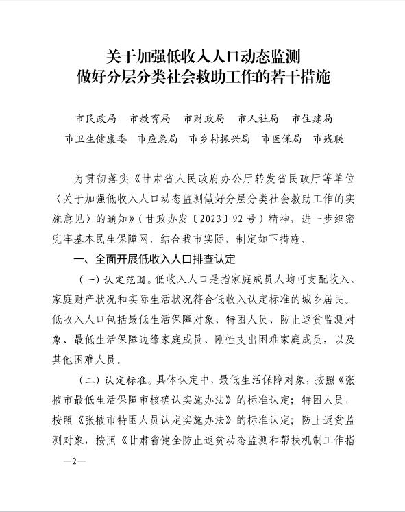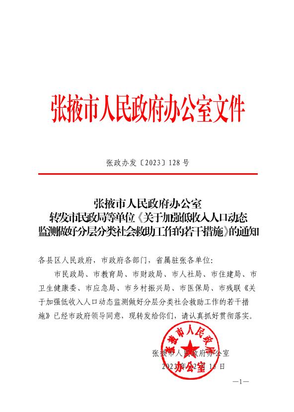 张政办发〔2023〕128号转发关于加强低收入人口动态监测做好分层分类社会救助工作的若干措施.pdf
