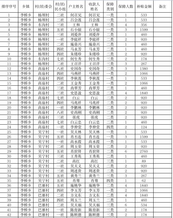 山丹县2026年3月农村居民最低生活保障发放花名册