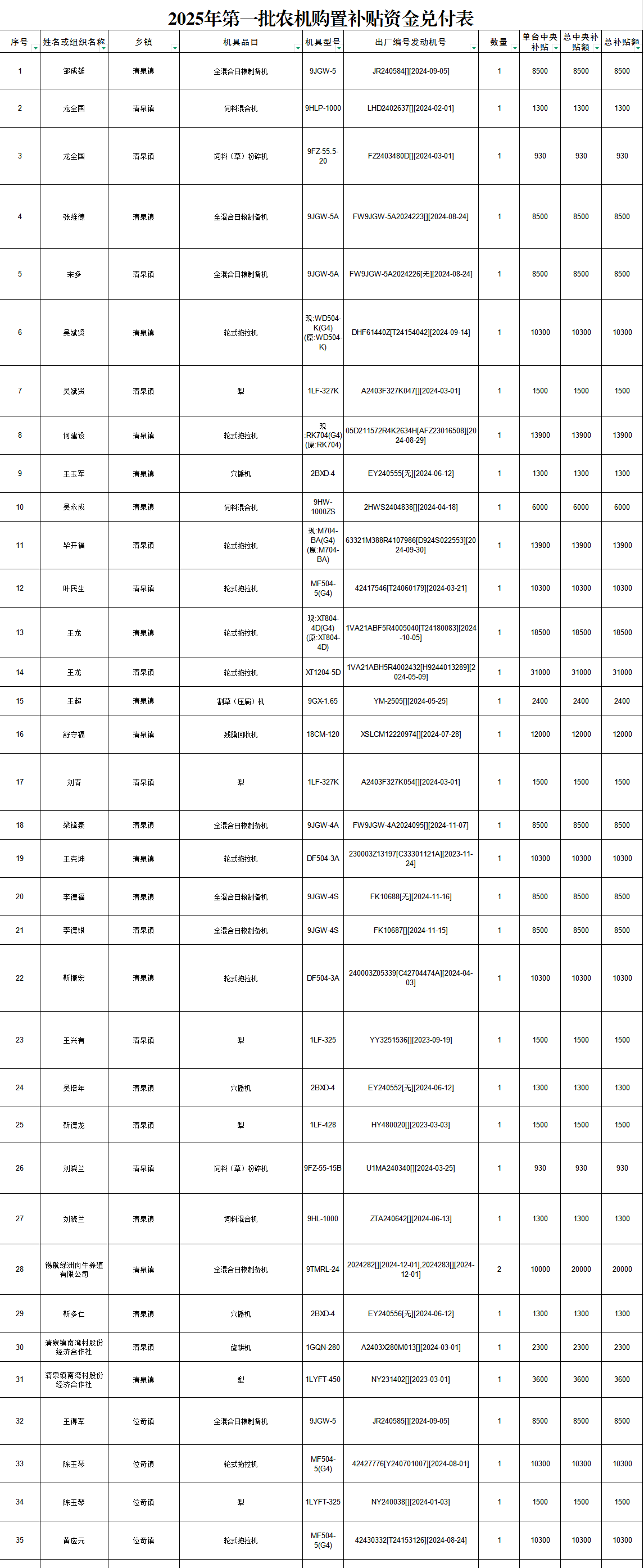山丹县2025年度农机购置与应用补贴资金兑付表