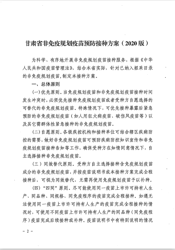 甘肃省免疫规划疫苗预防接种方案(2020版)