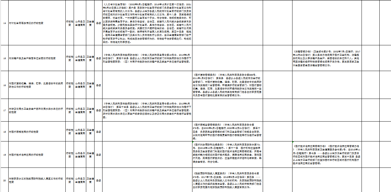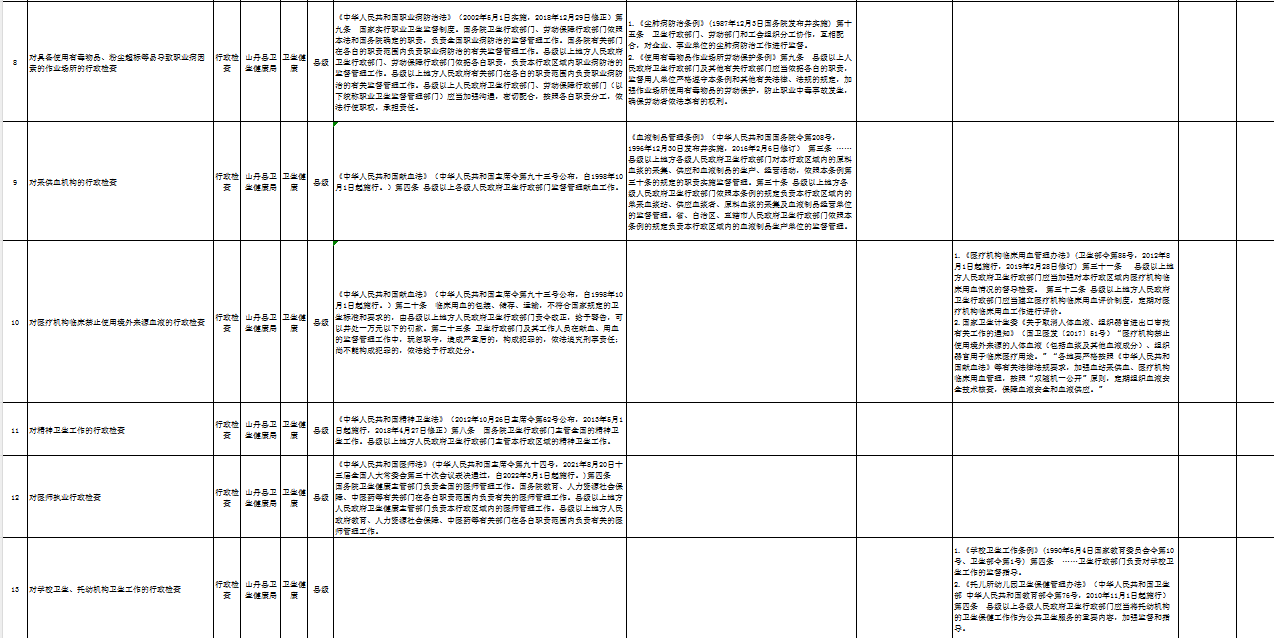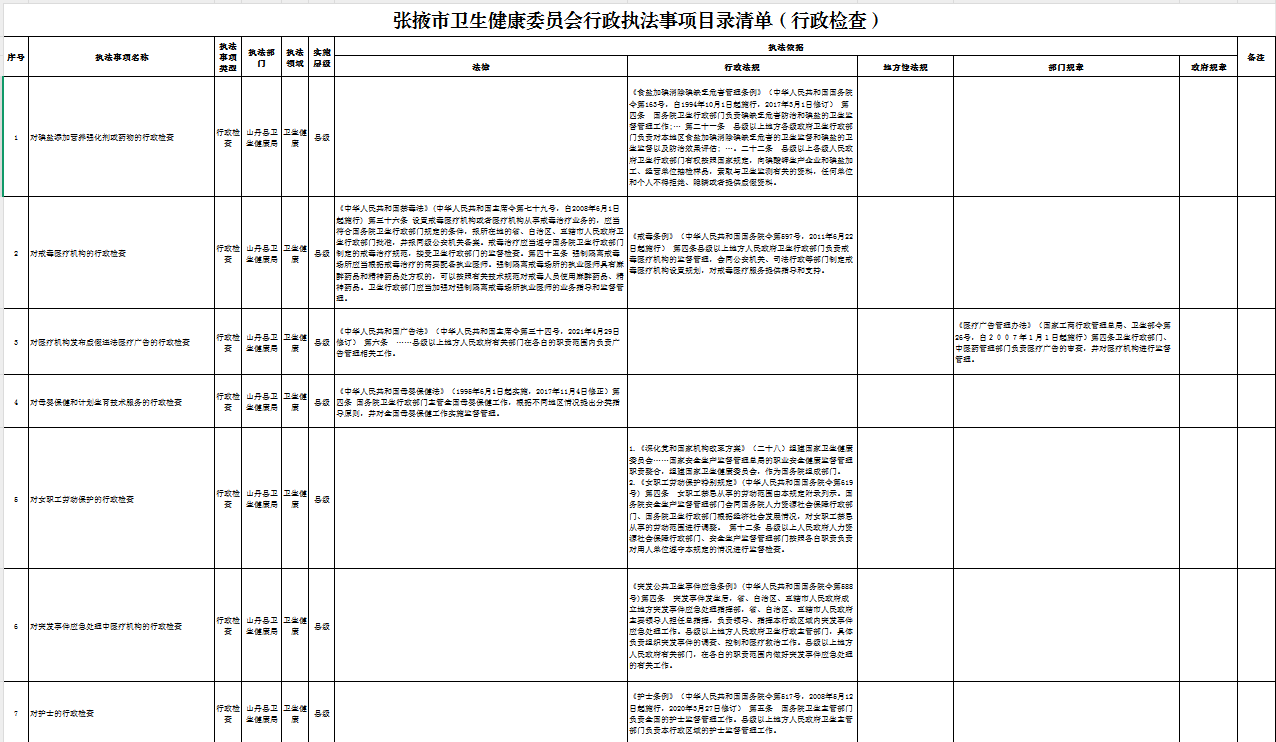 山丹县卫生健康局行政执法事项目录清单(行政检查、行政强制、行政处罚))