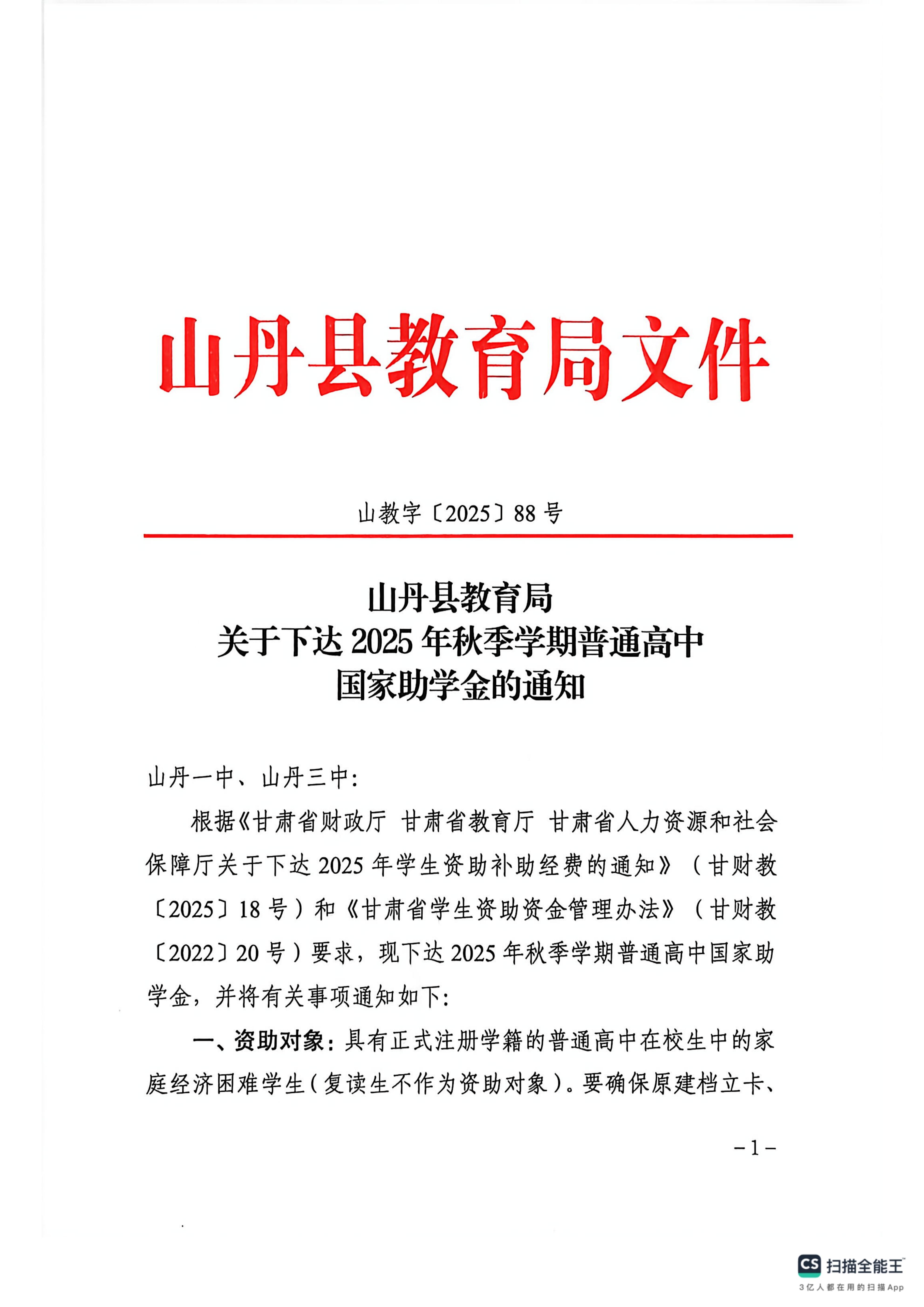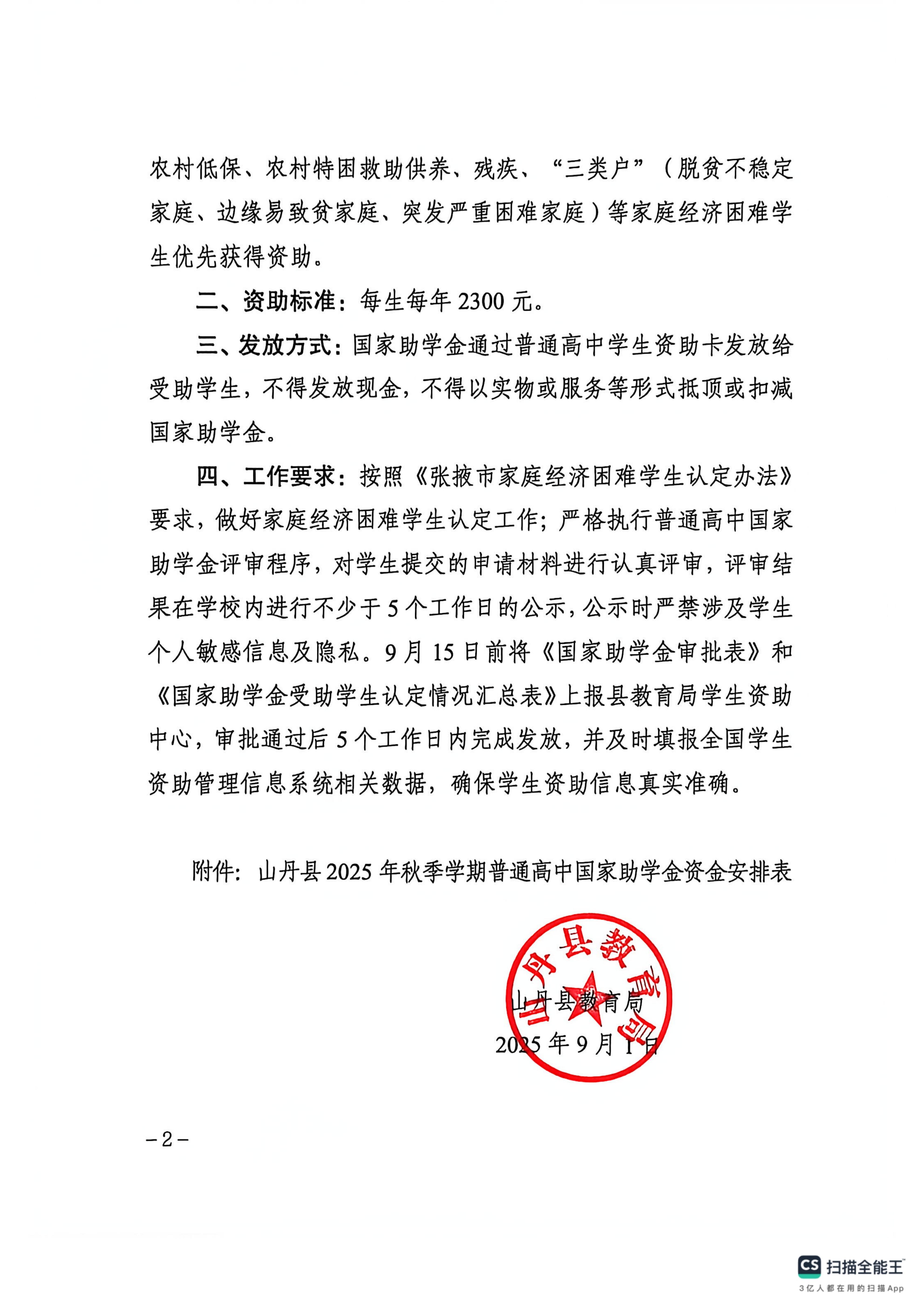 关于下达 2025年秋季学期普通高中国家助学金的通知