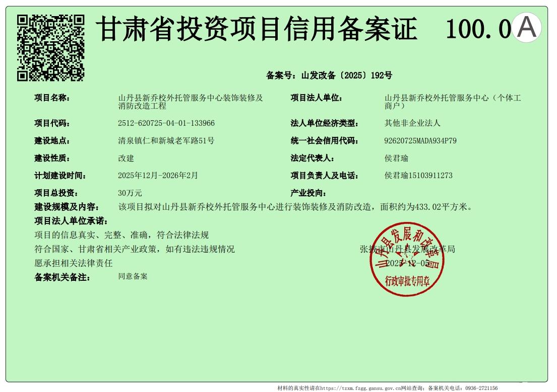 山丹县新乔校外托管服务中心装饰装修及消防改造工程