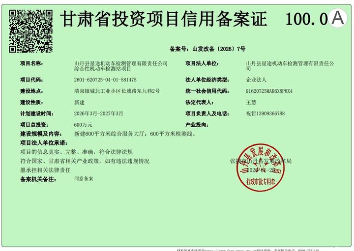 山丹县星途机动车检测管理有限责任公司综合性机动车检测站项目