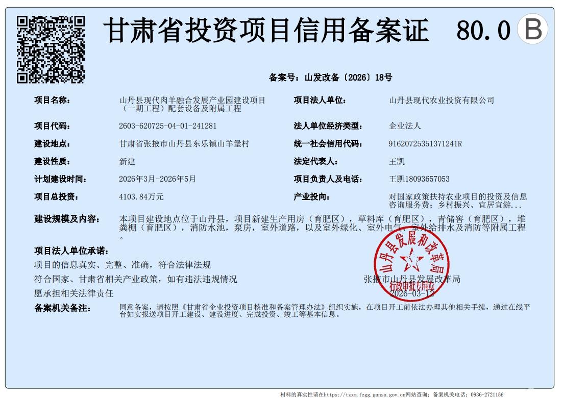 山丹县现代肉羊融合发展产业园建设项目(一期工程)配套设备及附属工程