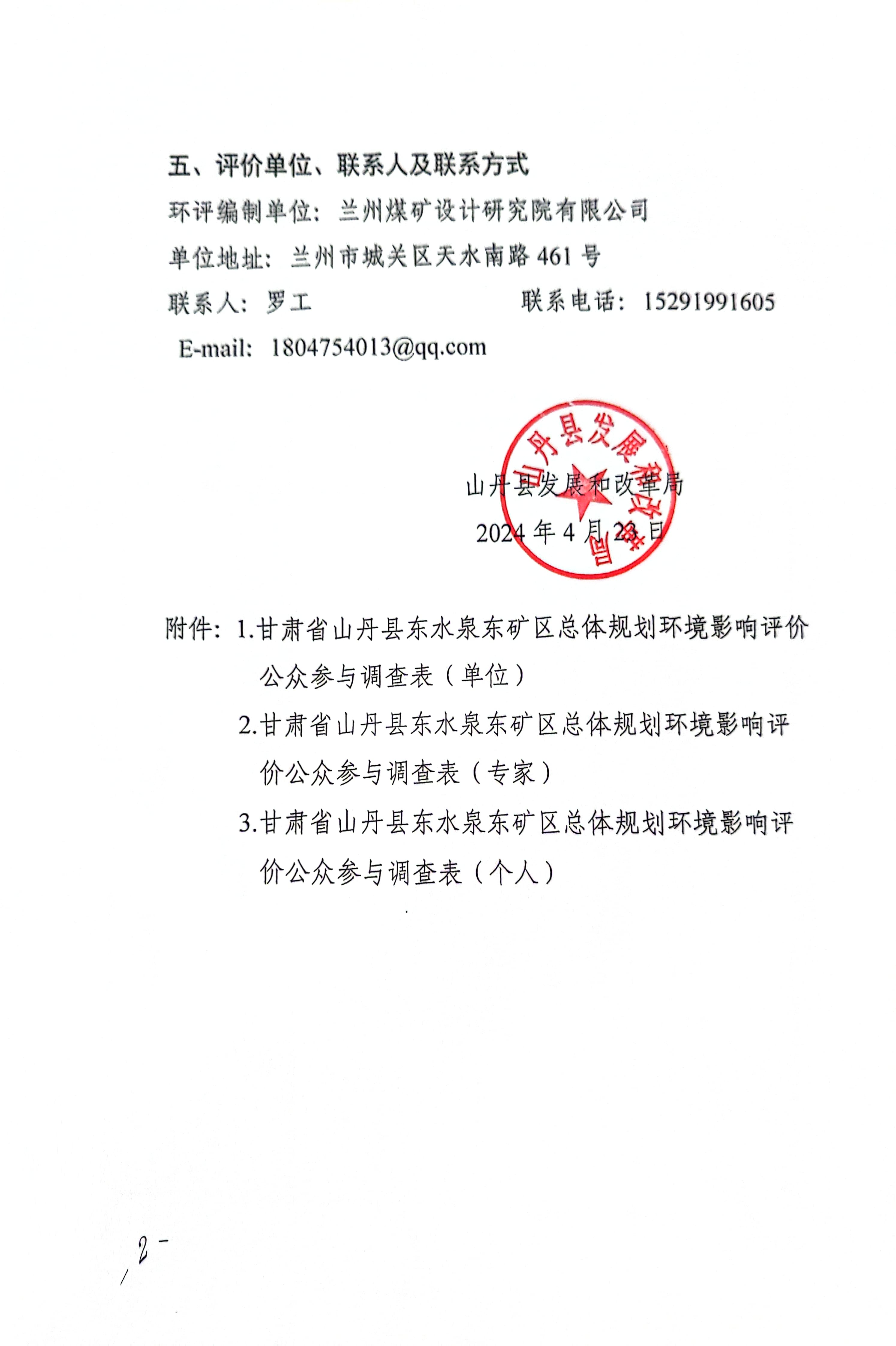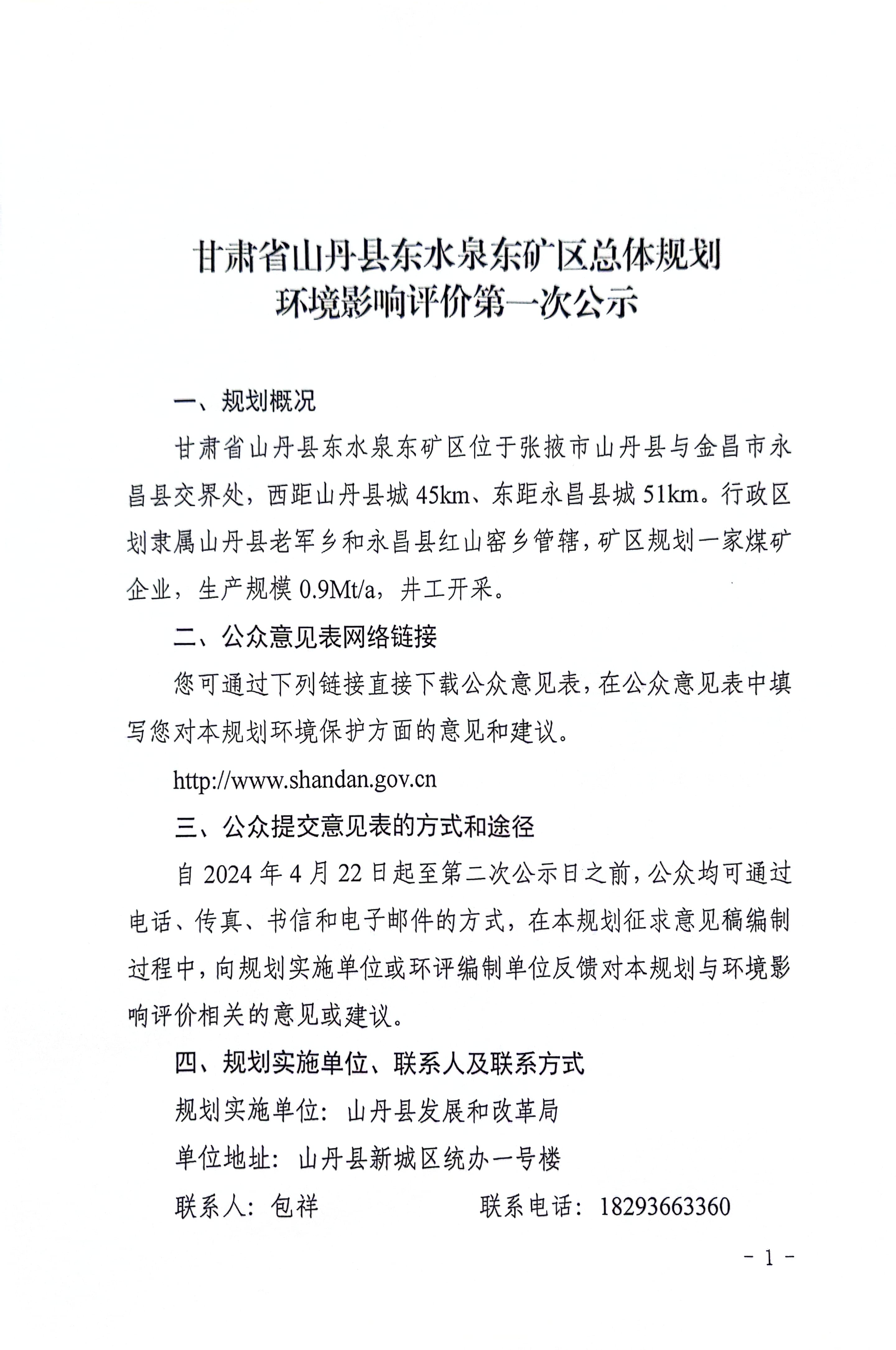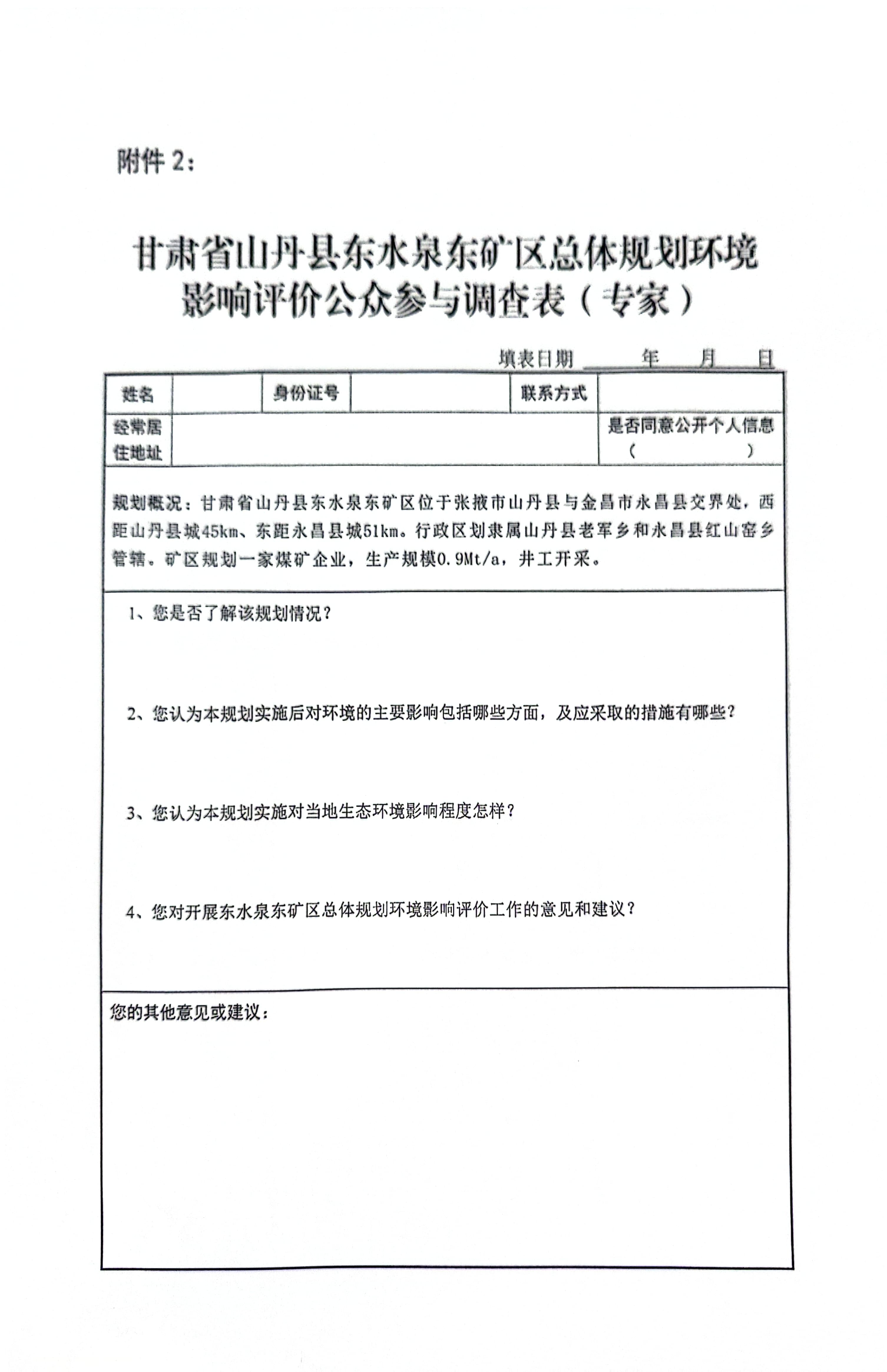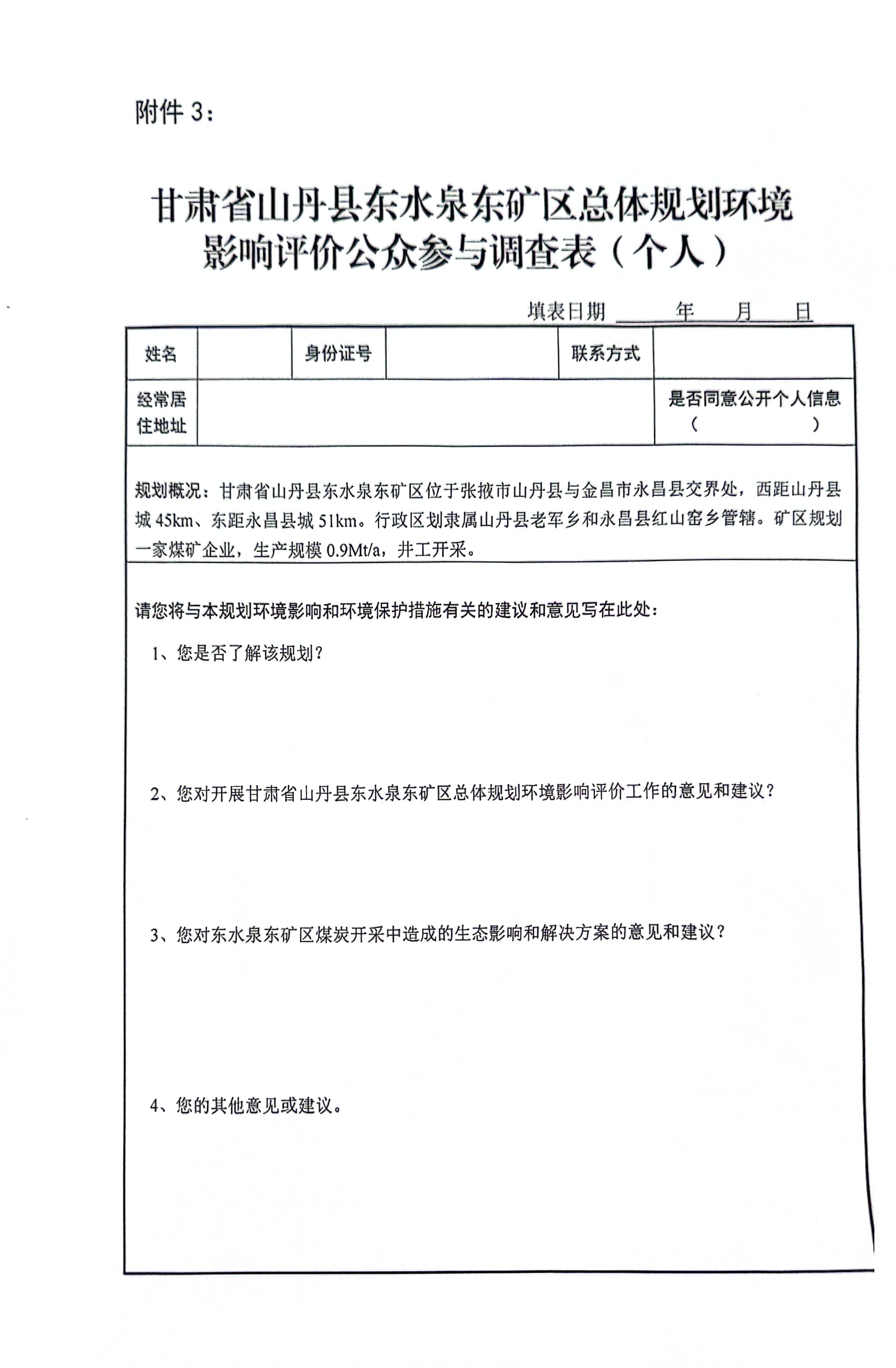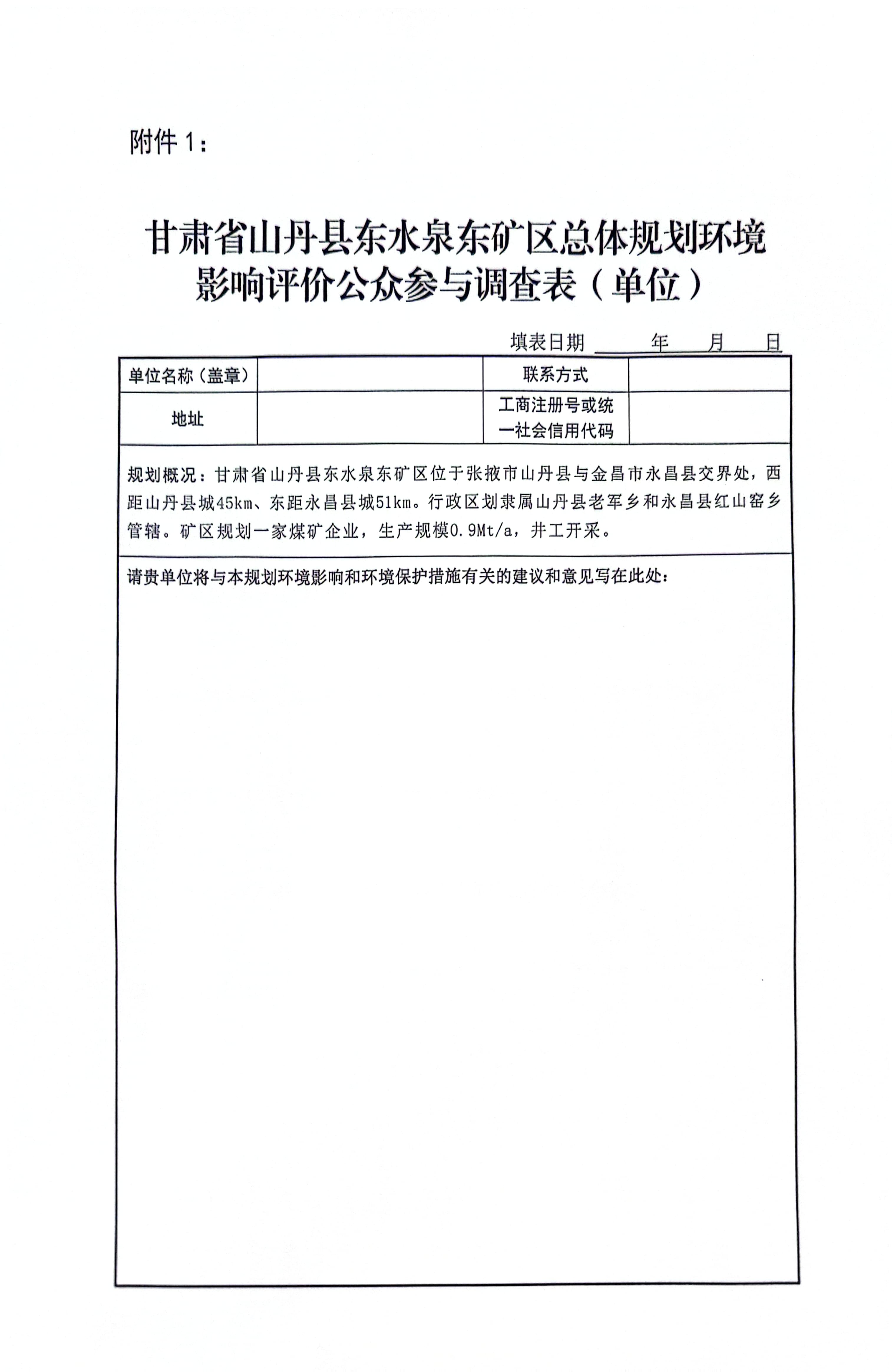 甘肃省山丹县东水泉东矿区总体规划环境影响评价第一次公示