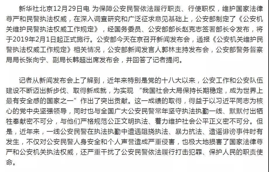 公安部制定出台《公安机关维护民警执法权威工作规定》