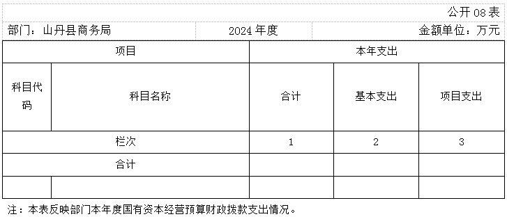 我单位2024年5月因机构改革,单位合并,原商务局所有资金全部划入山丹县工业信息化和商务局,故无支出,此表无数据。