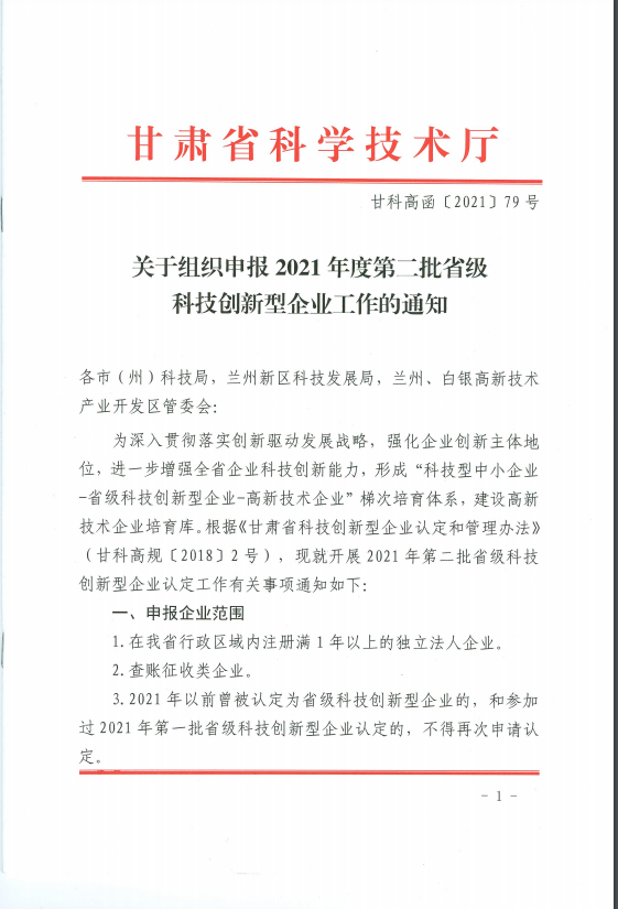 关于组织申报2021年度第二批省级科技创新型企业工作的通知