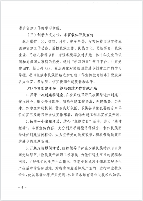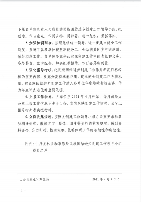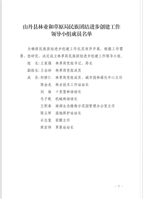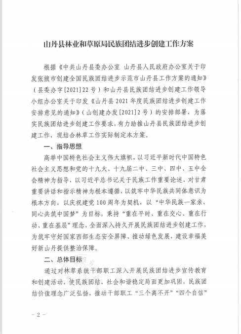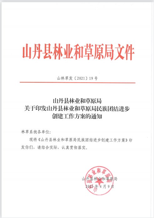 山丹县林业和草原局关于印发《山丹县林业和草原局民族团结进步创建工作方案的通知》