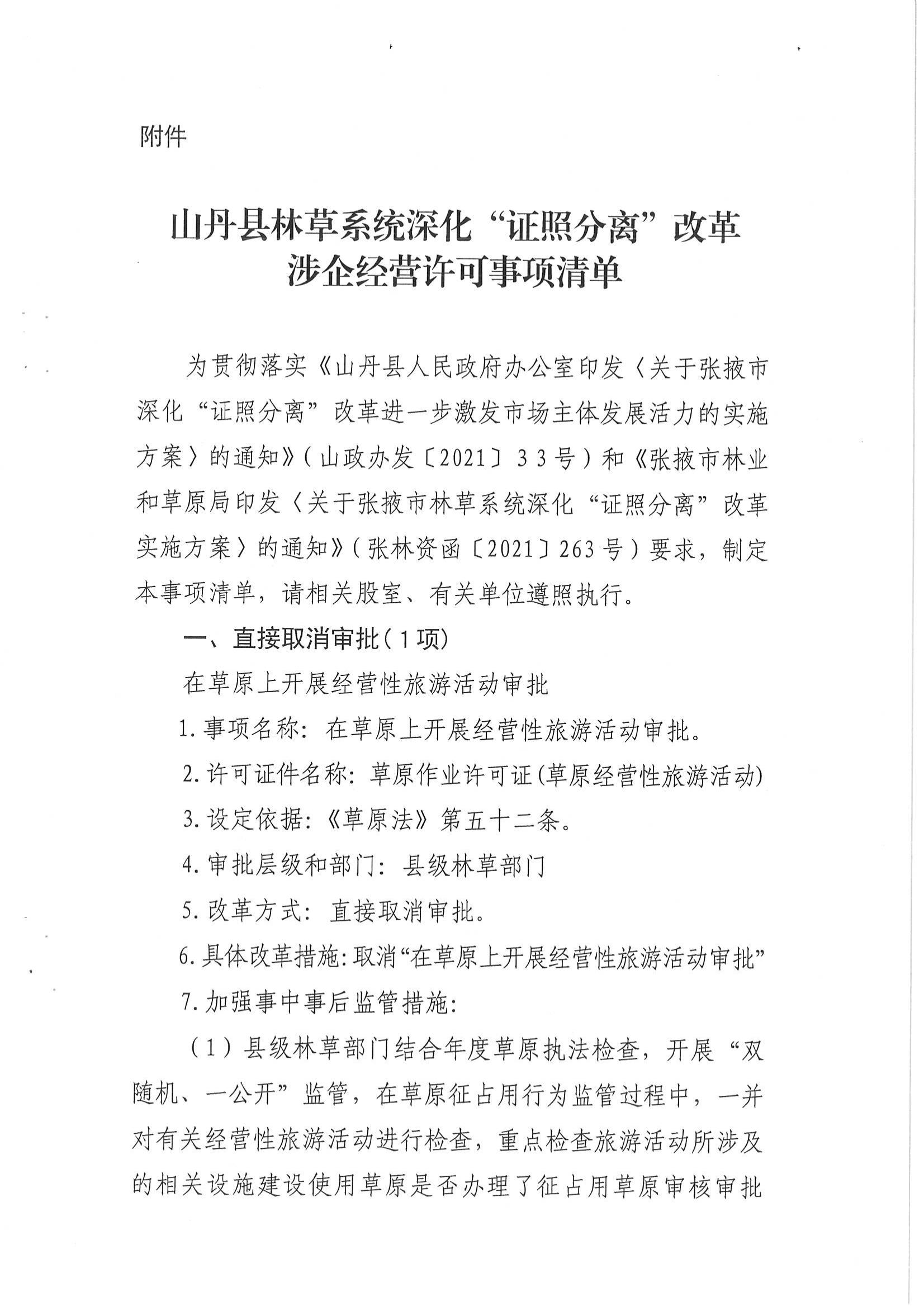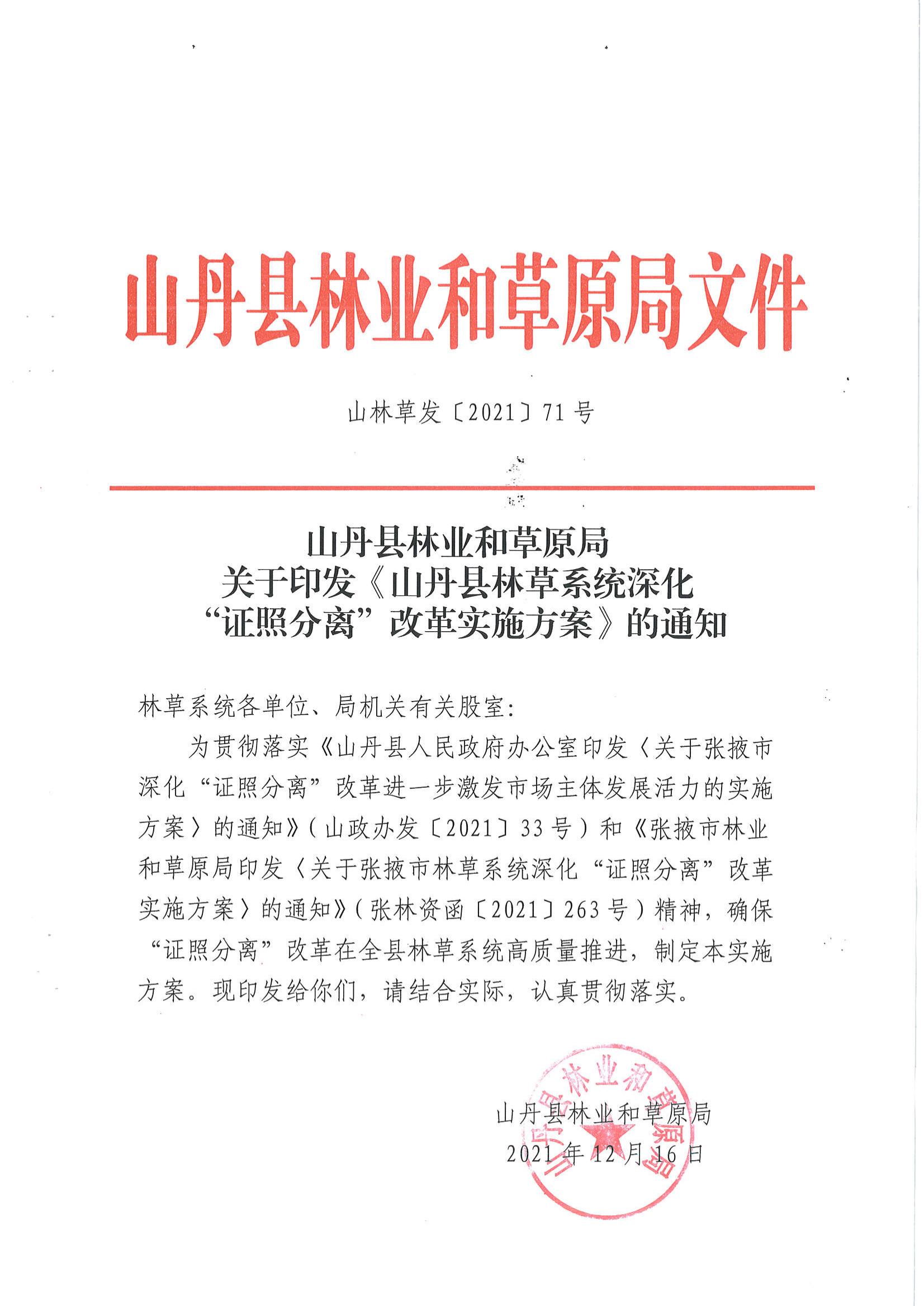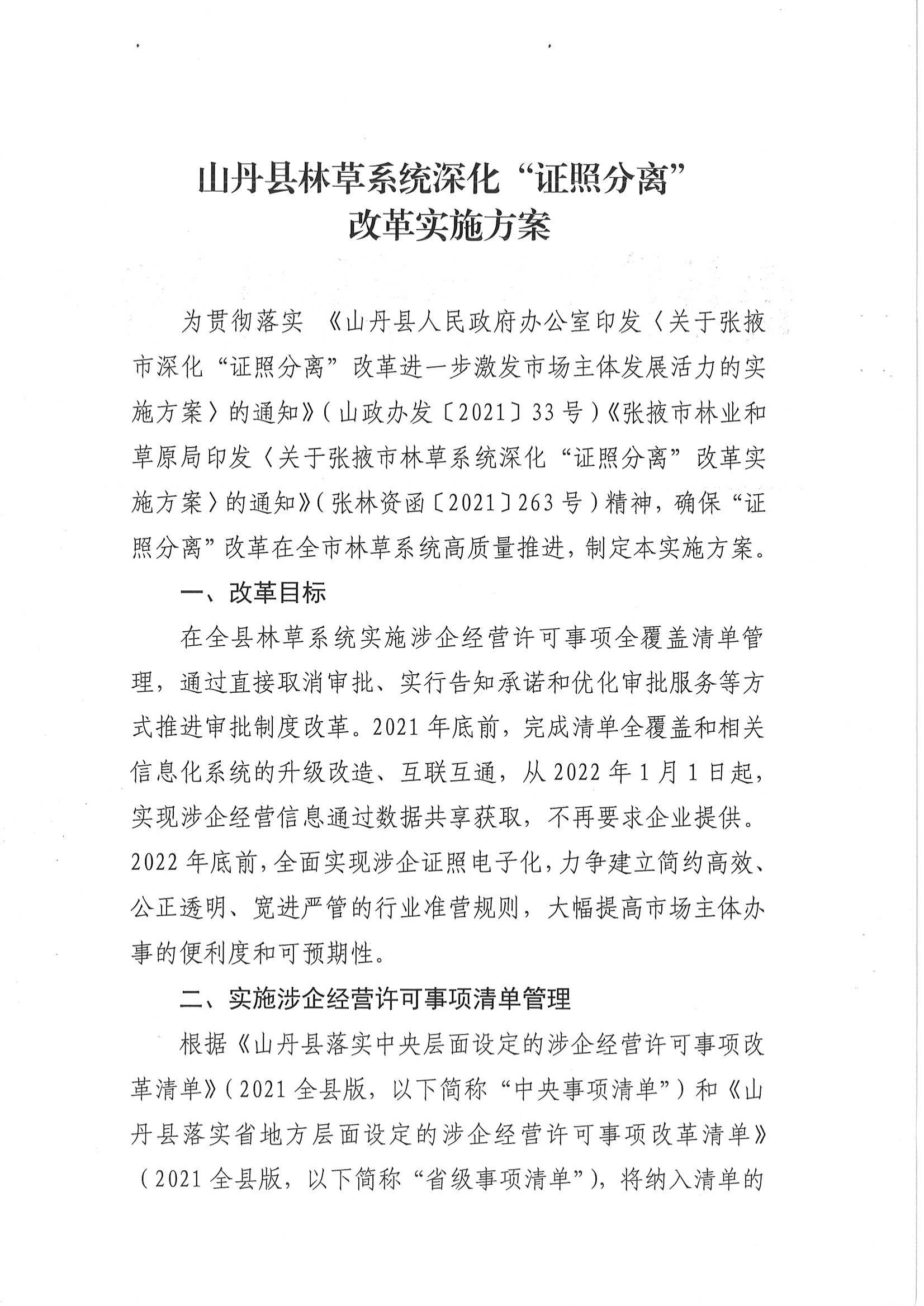 山丹县林业和草原局关于印发《山丹县林草系统深化“证照分离”改革实施方案》的通知