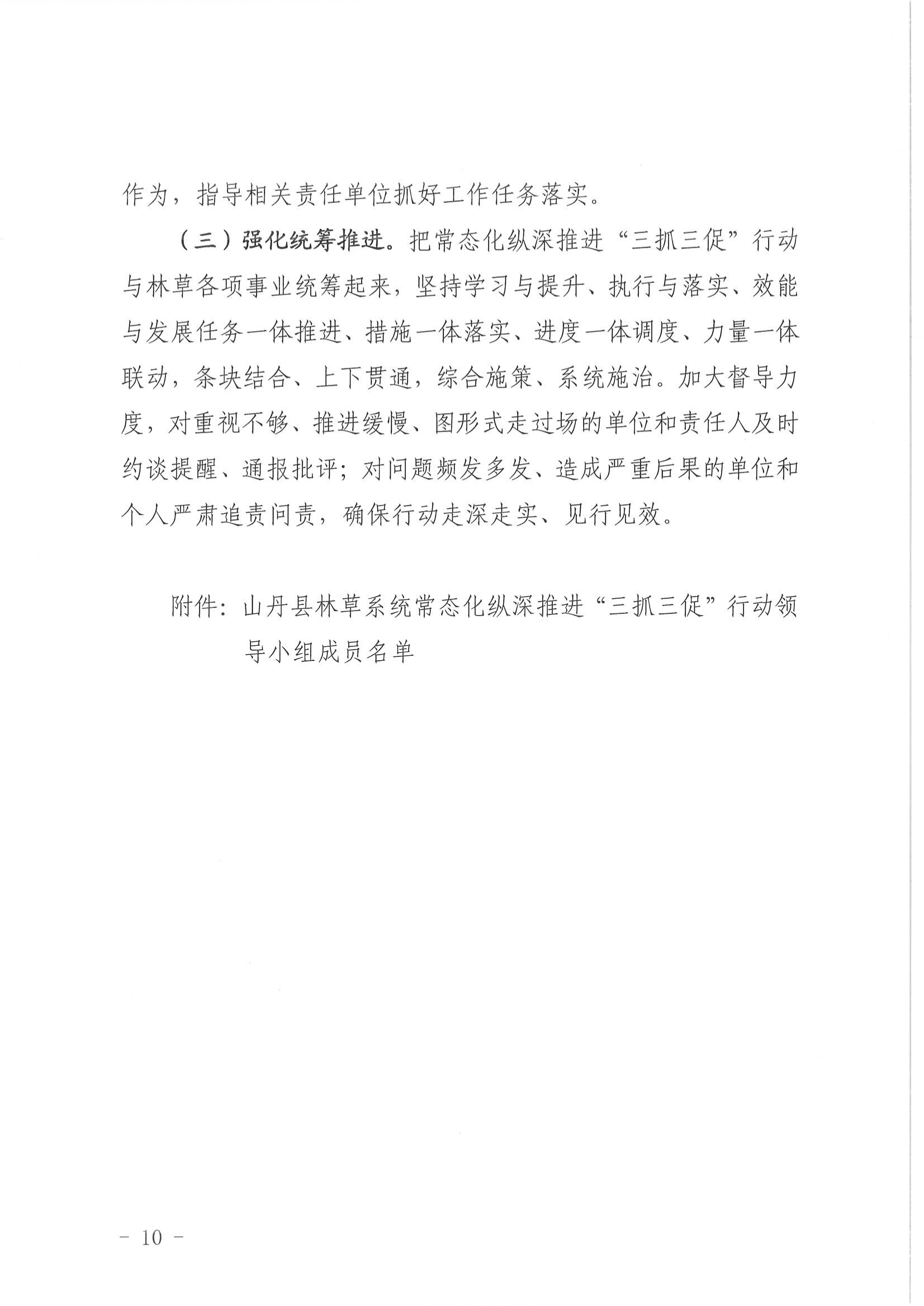 山丹县林业和草原局关于印发《山丹县林草系统常态化纵深推进“三抓三促”行动方案》的通知