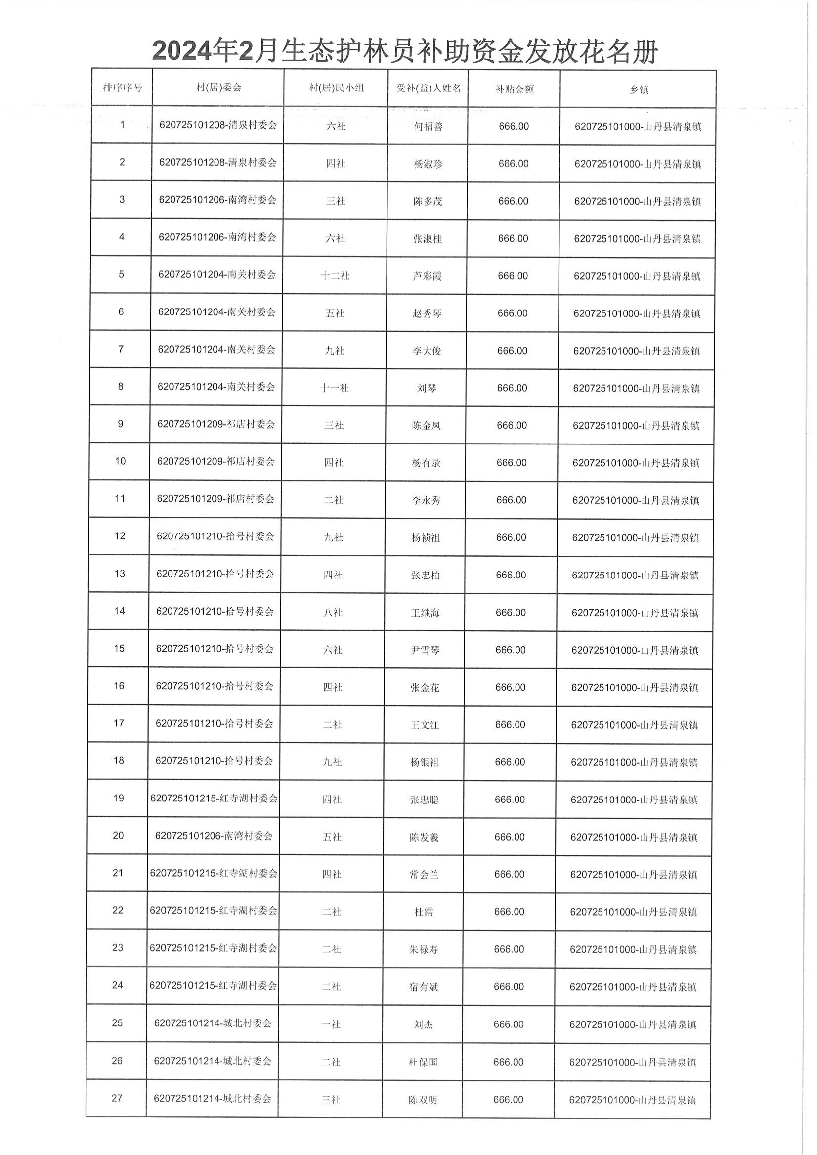 2024年脱贫人口生态护林员劳务报酬发放花名册(1月)