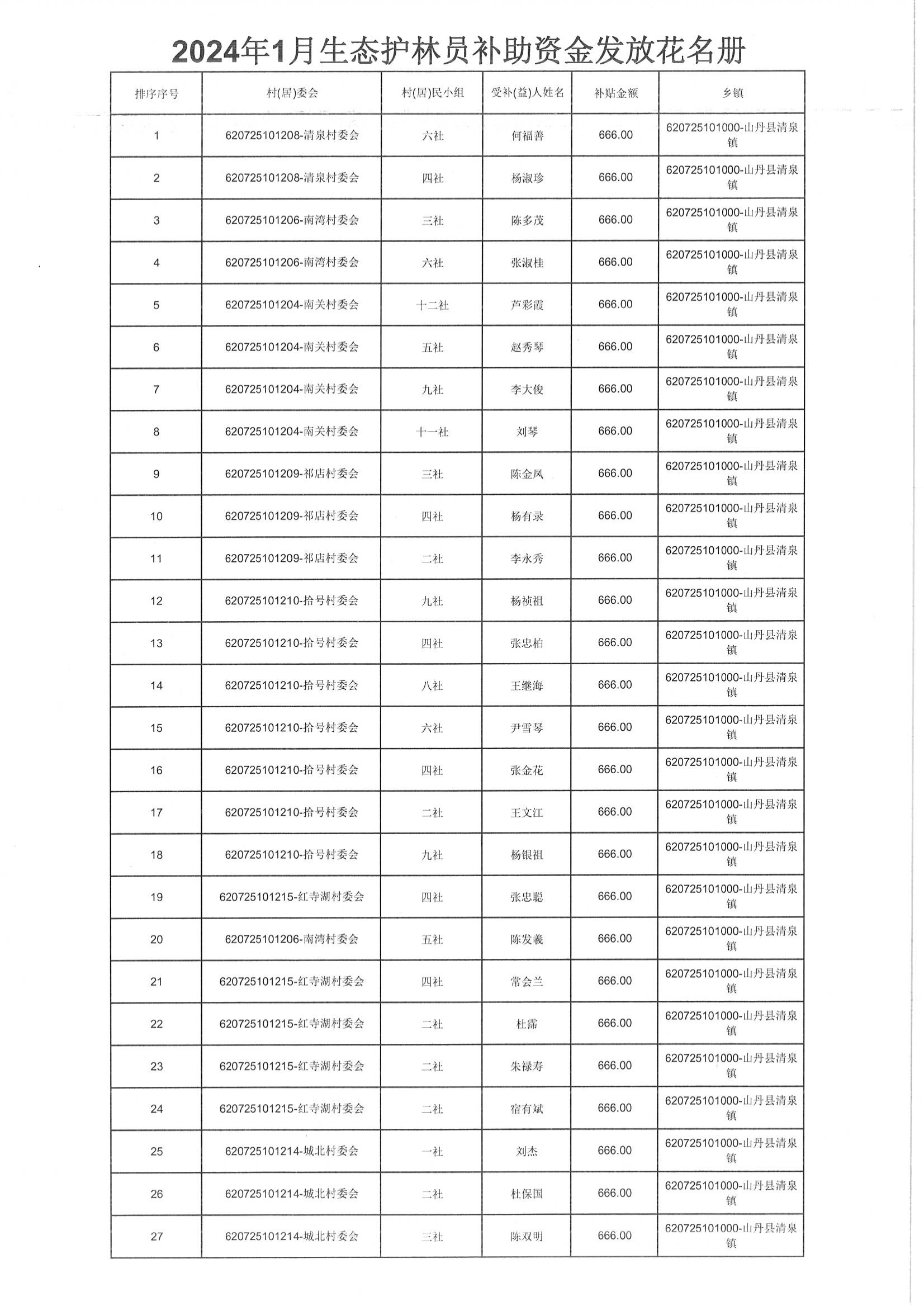 2024年脱贫人口生态护林员劳务报酬发放花名册(2月)