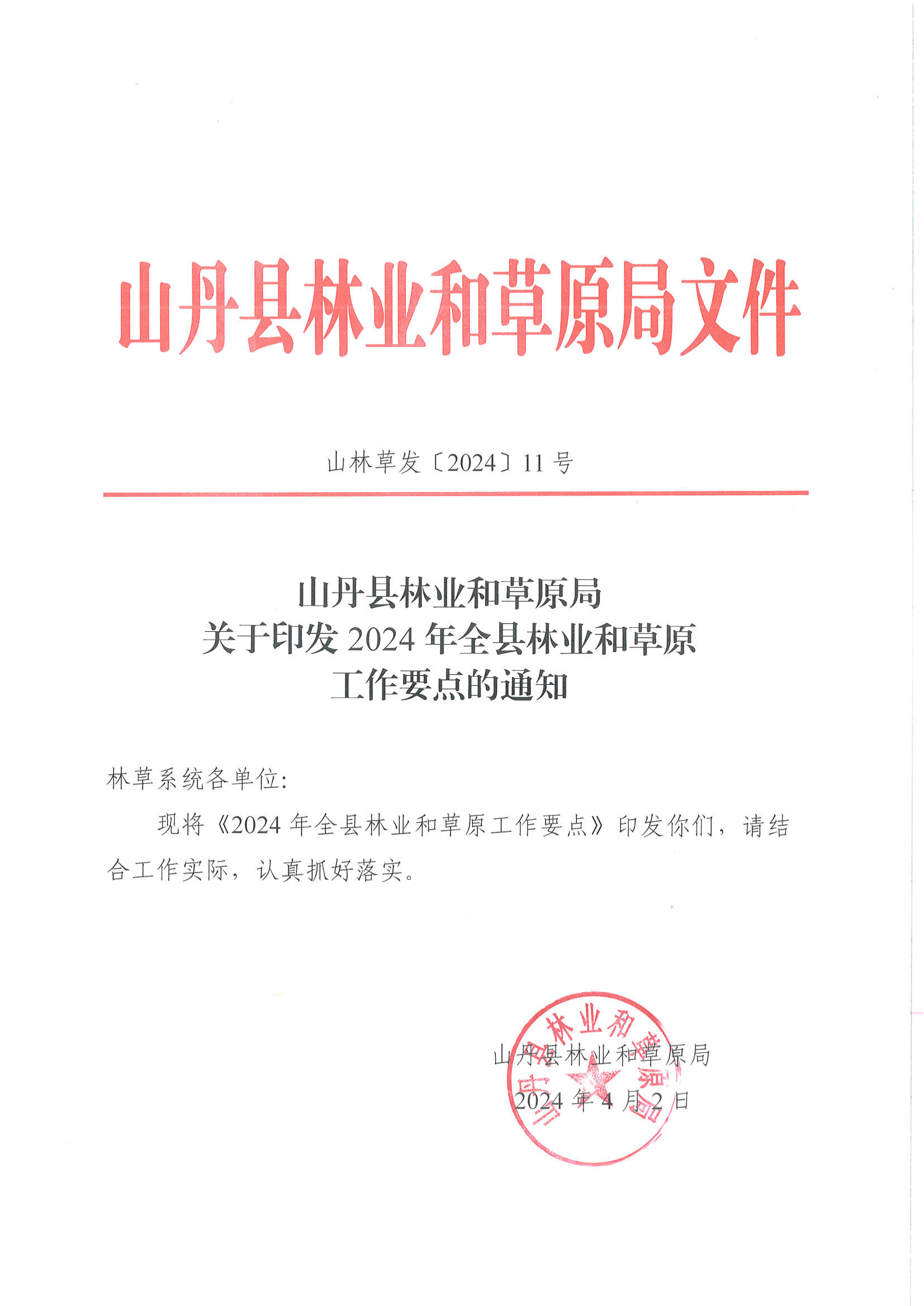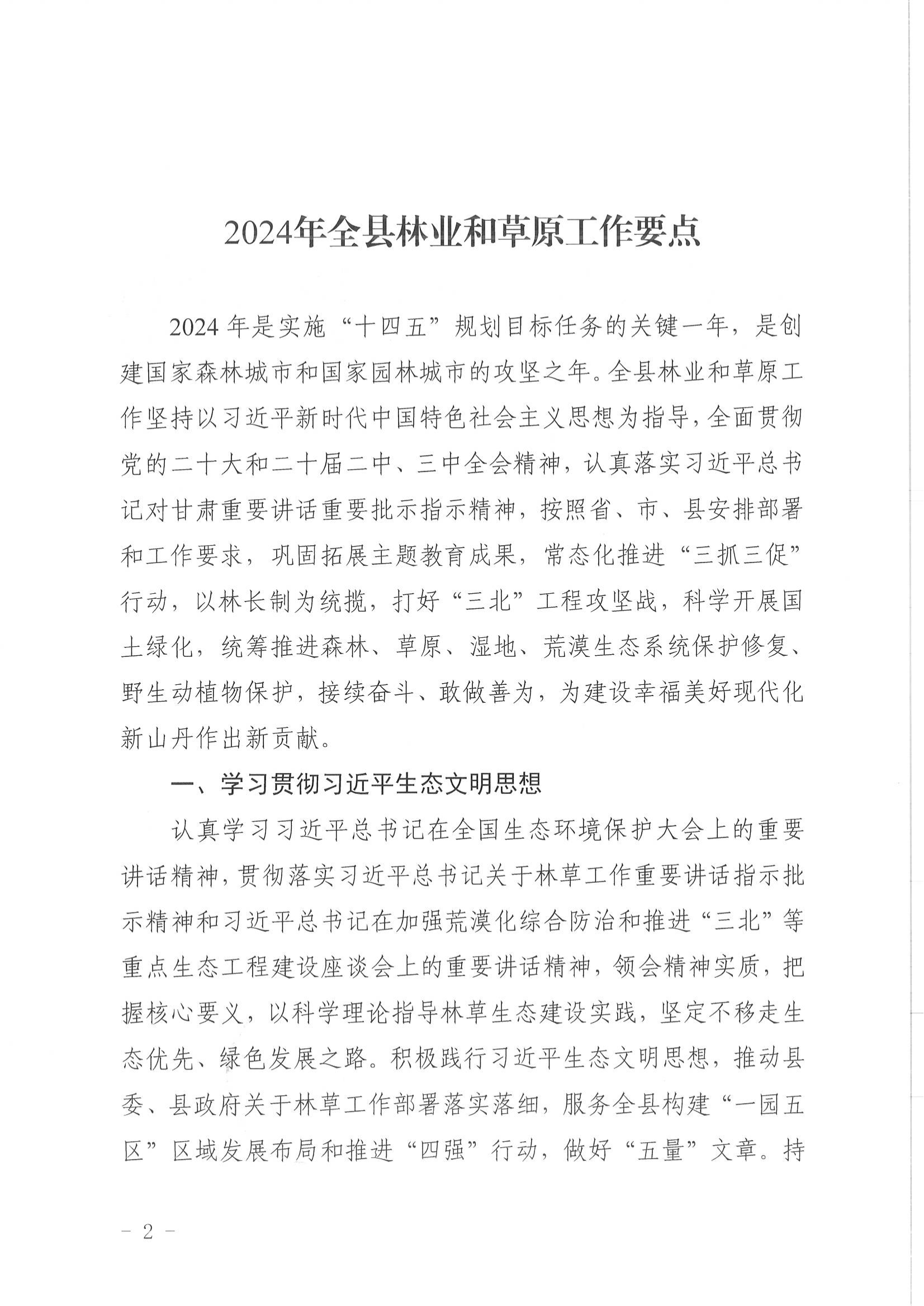 山丹县林业和草原局关于印发2024年全县林业和草原工作要点的通知