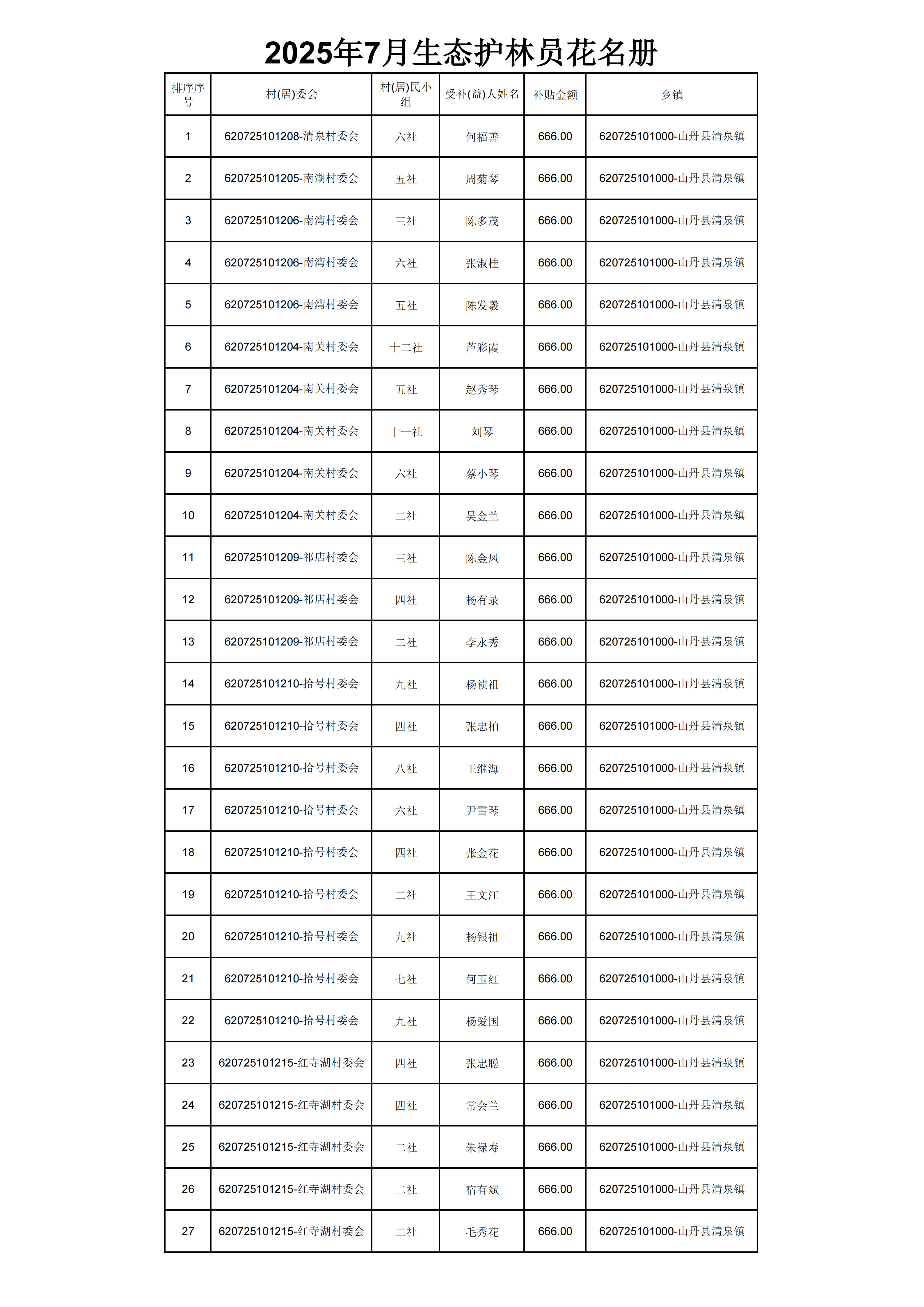 2025年脱贫人口生态护林员劳务报酬发放花名册(7月)
