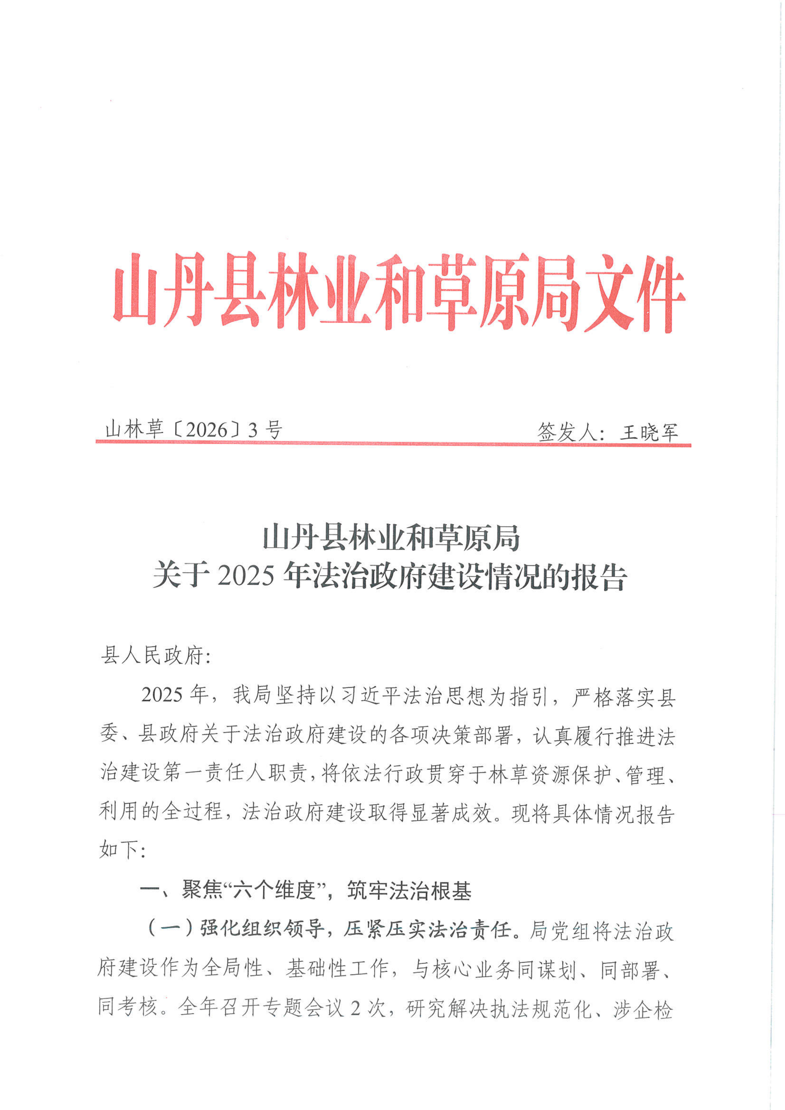 山丹县林业和草原局关于2025年法治政府建设情况的报告