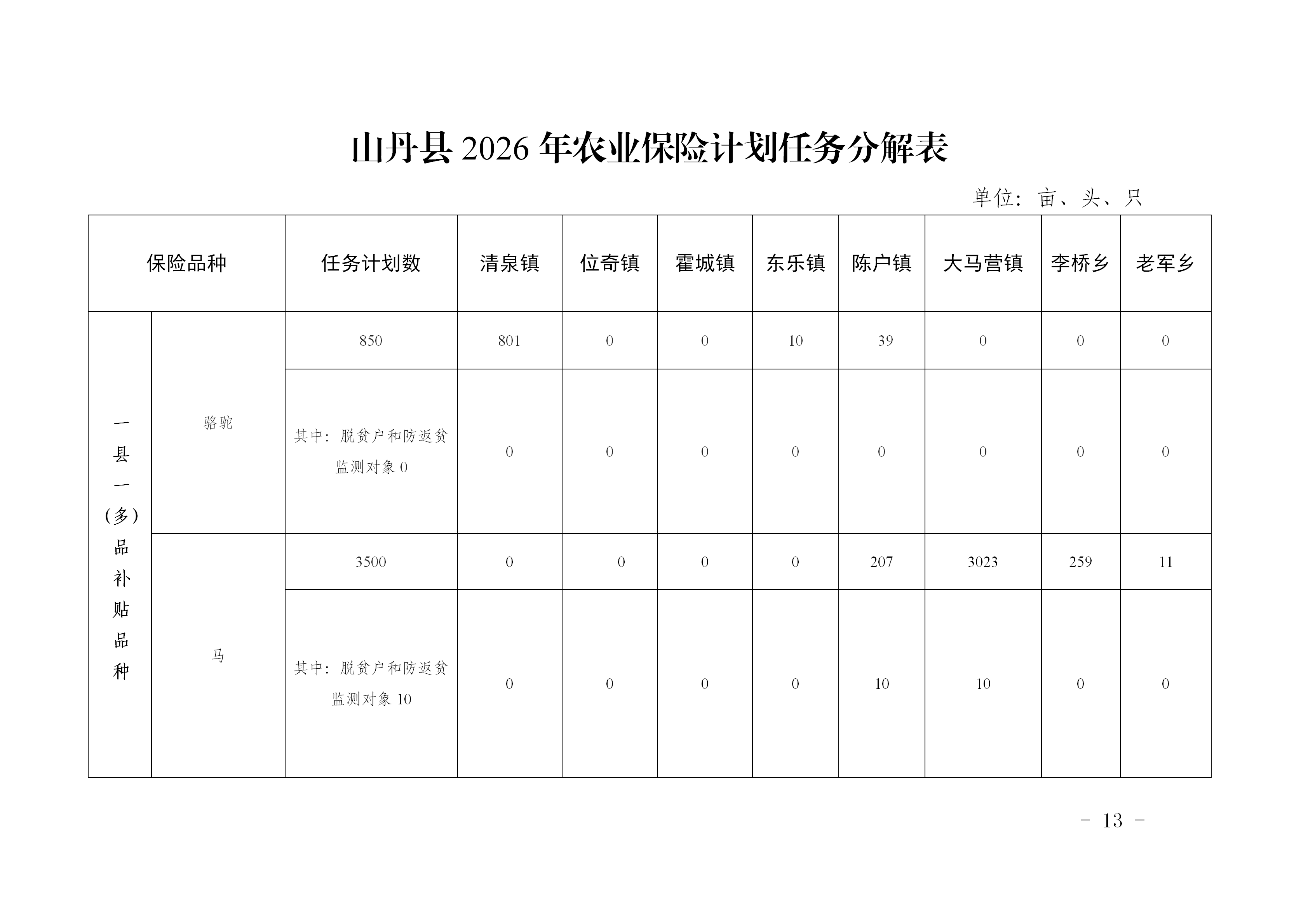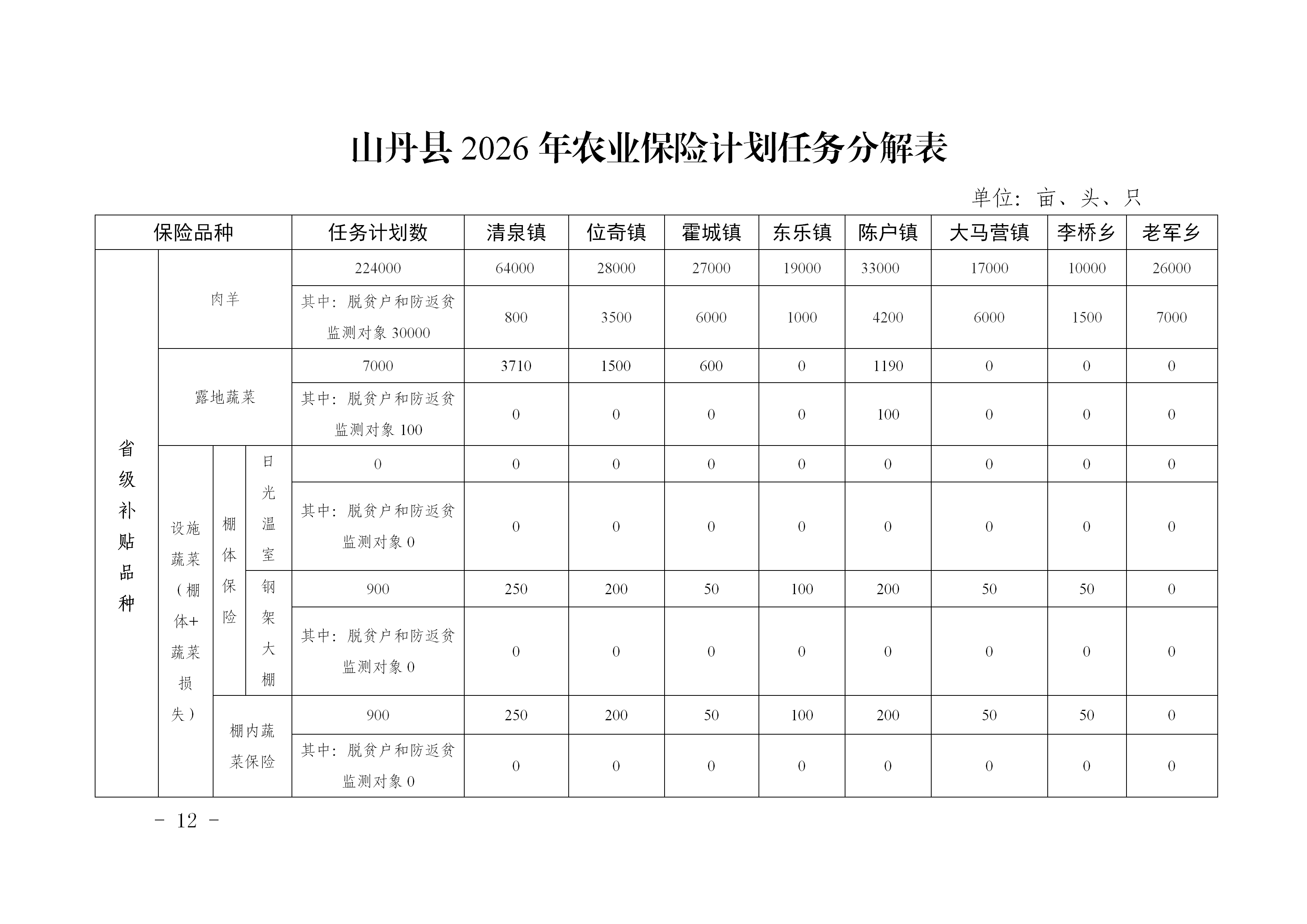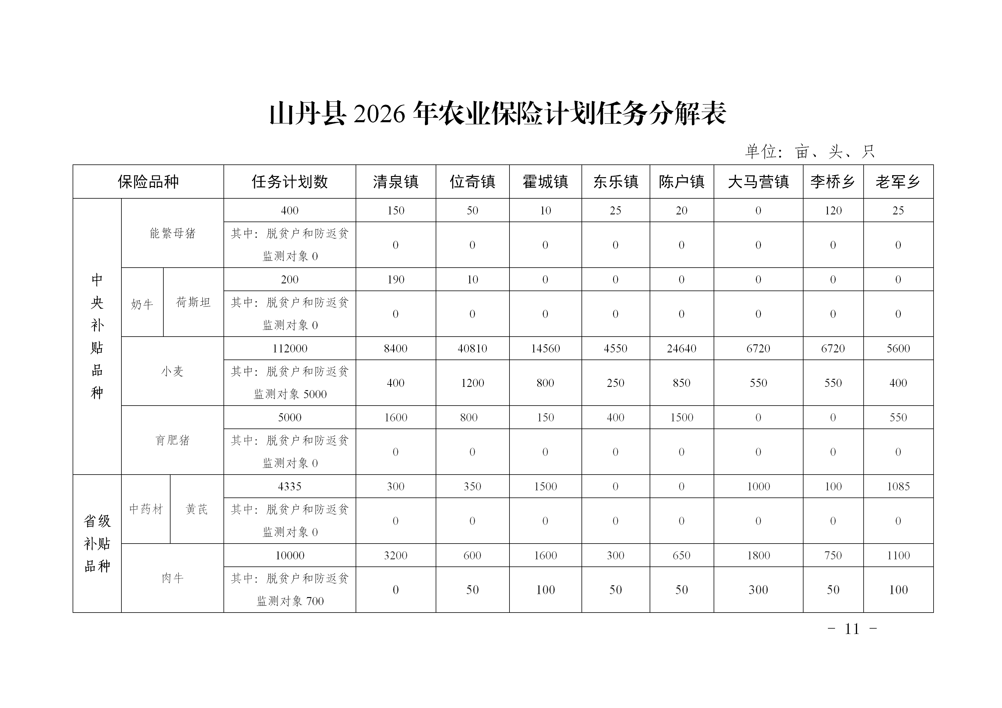 2026年全县政策性农业保险工作由县农业农村局、县财政局、各乡镇人民政府共同组织实施,中国人民财产保险有限公司山丹支公司、中国大地财产保险股份有限公司山丹支公司、中国平安财产保险股份有限公司山丹支公司具体承办。