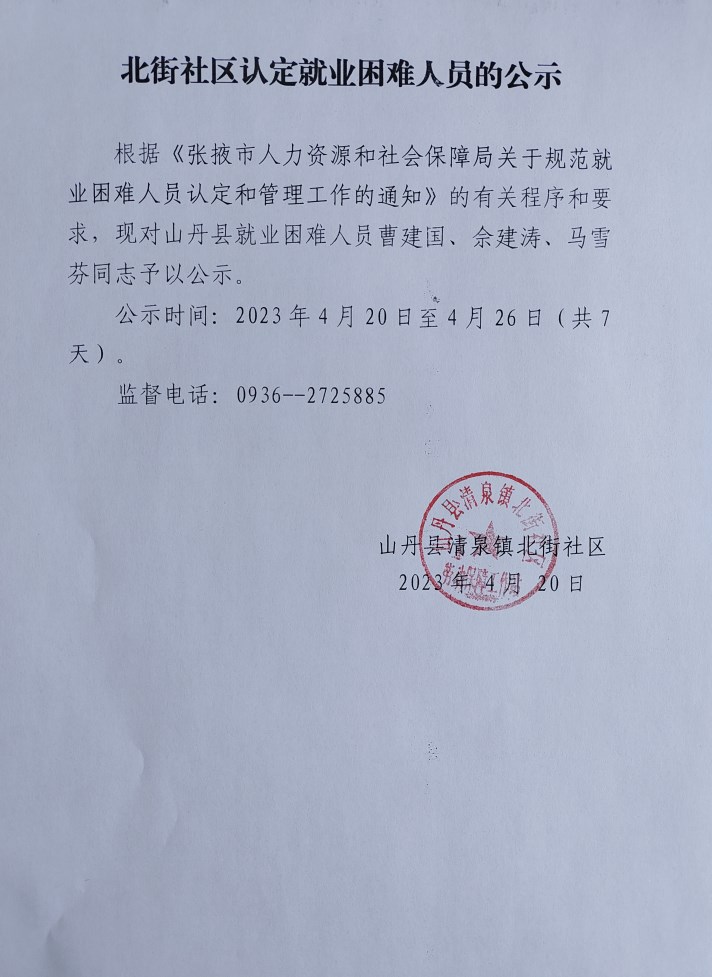 公开目录: 清泉镇北街社区