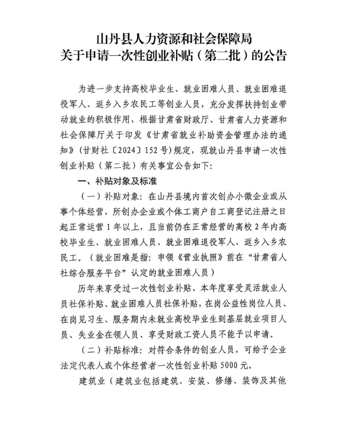 焉支社区:关于申请一次性创业补贴(第二批)的公告