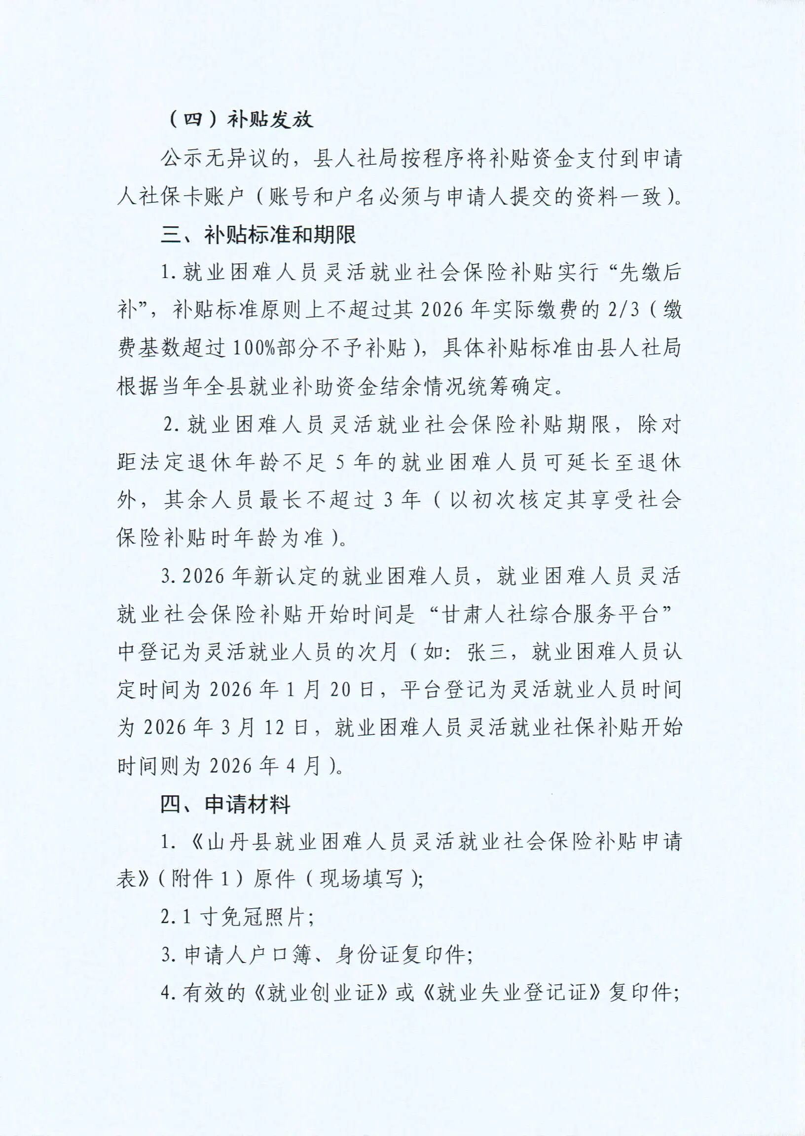 焉支社区:山丹县2026年就业困难人员灵活就业社会保险补贴申请公告
