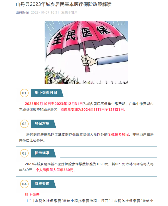 清泉镇焉支社区2023年关于城乡居民基本医疗保险政策解读