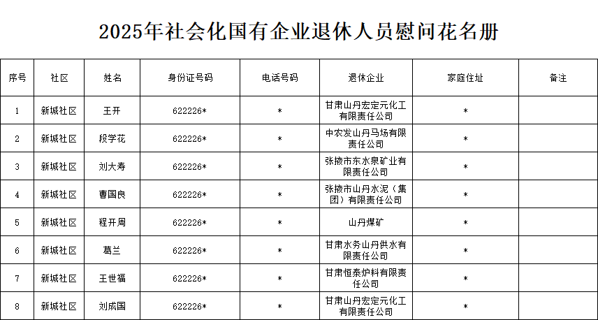 2025年新城社区9月社会化国有企业退休人员慰问花名册