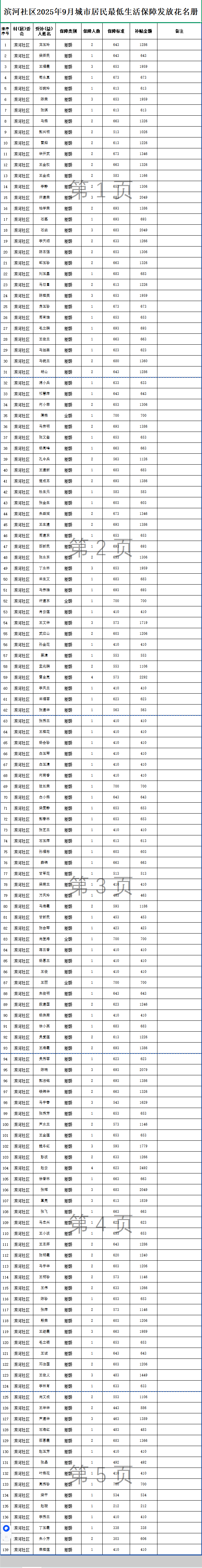 滨河社区2025年9月城市居民最低生活保障发放花名册