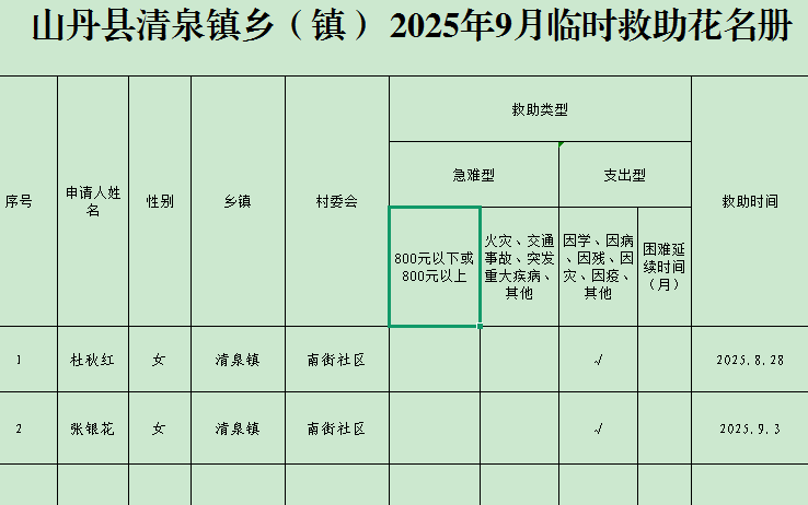 山丹县清泉镇南街社区2025年9月临时救助花名册