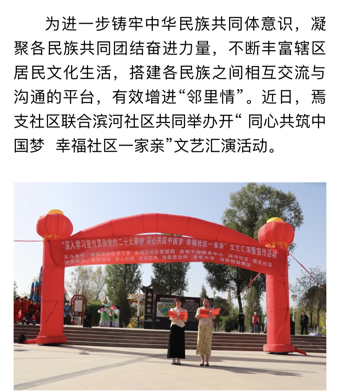 焉支社区开展“同心共筑中国梦,幸福社区一家亲”文艺汇演活动