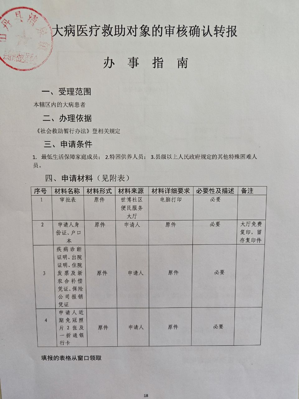 县府街社区大病医疗救助对象的审核确认转报办事指南