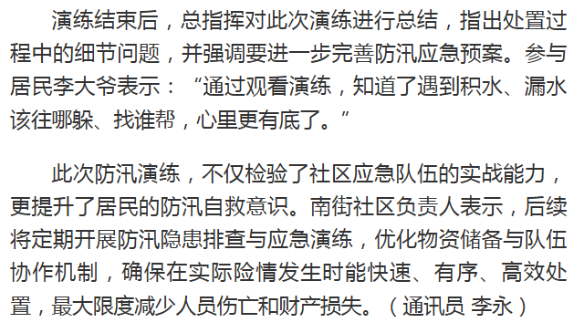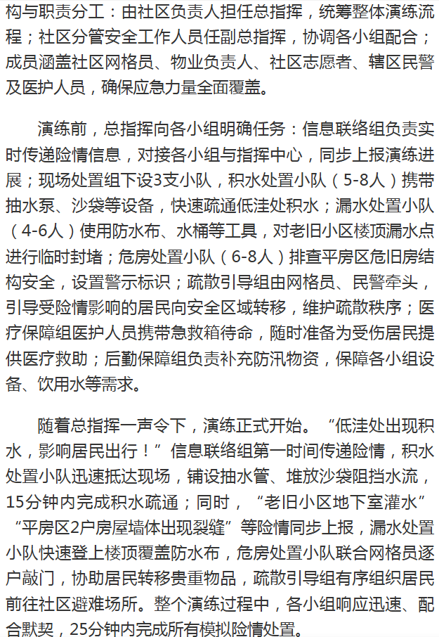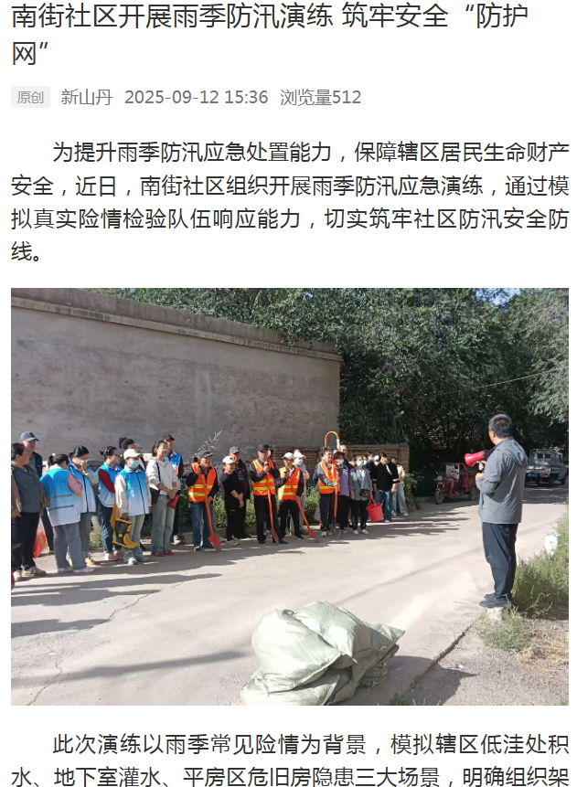 南街社区开展雨季防汛演练 筑牢安全“防护网”