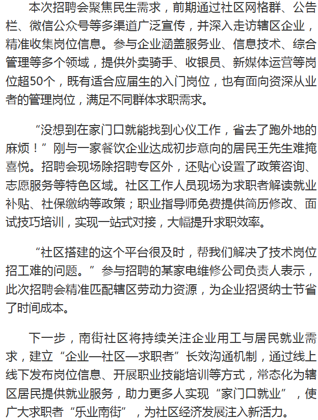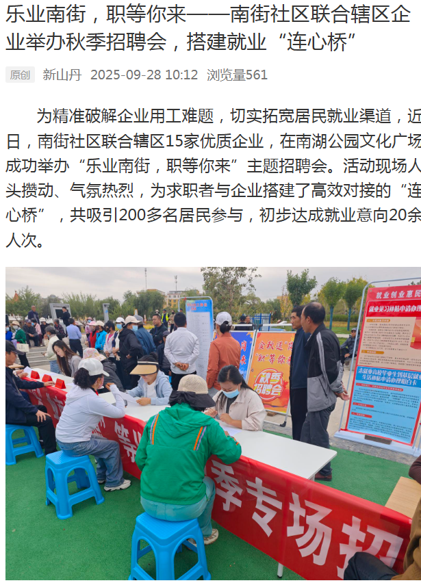 乐业南街,职等你来——南街社区联合辖区企业举办秋季招聘会,搭建就业“连心桥”
