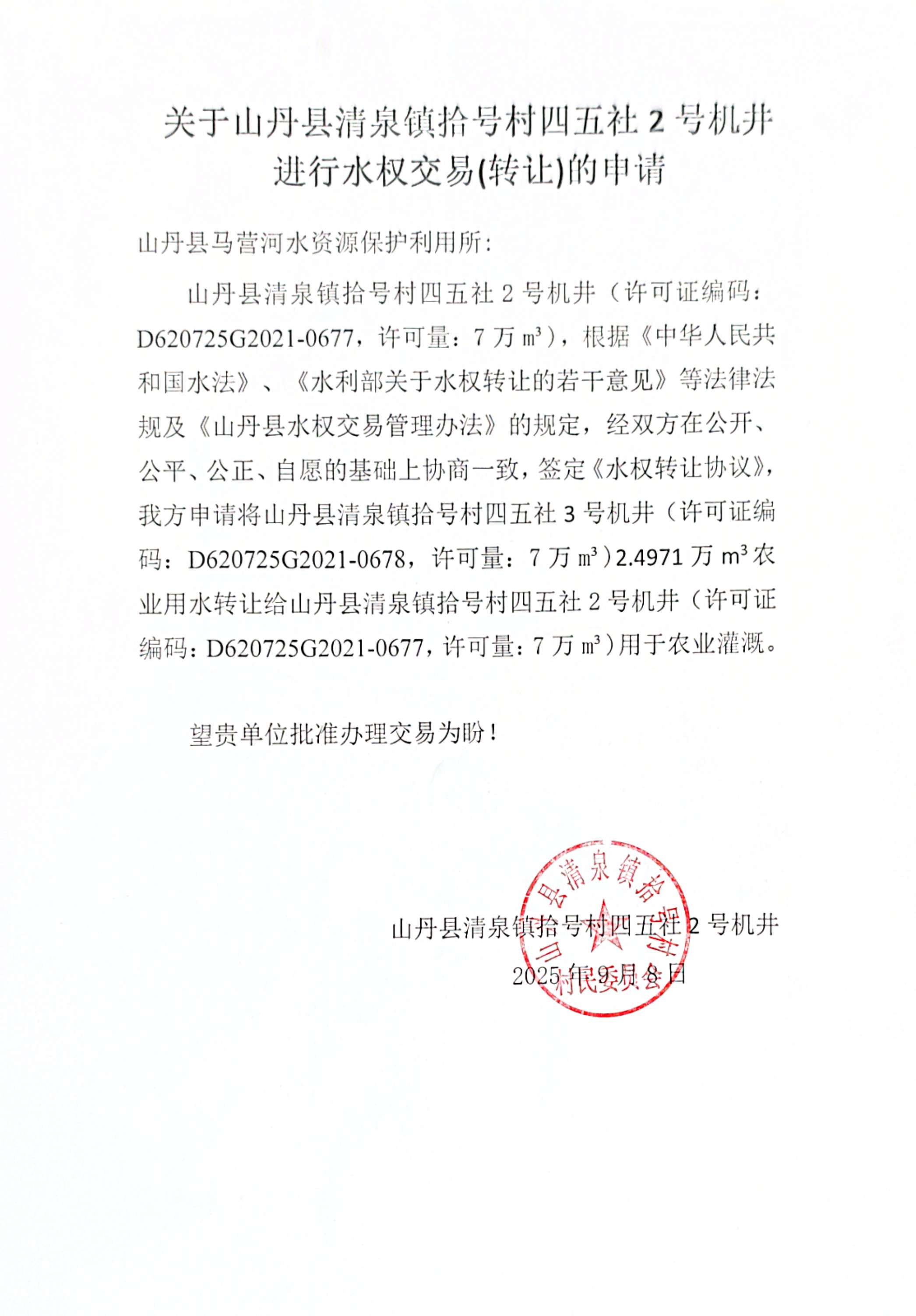 清泉镇拾号村农业灌溉机井四、五社3号机井转清泉镇拾号村四、五社2号机井