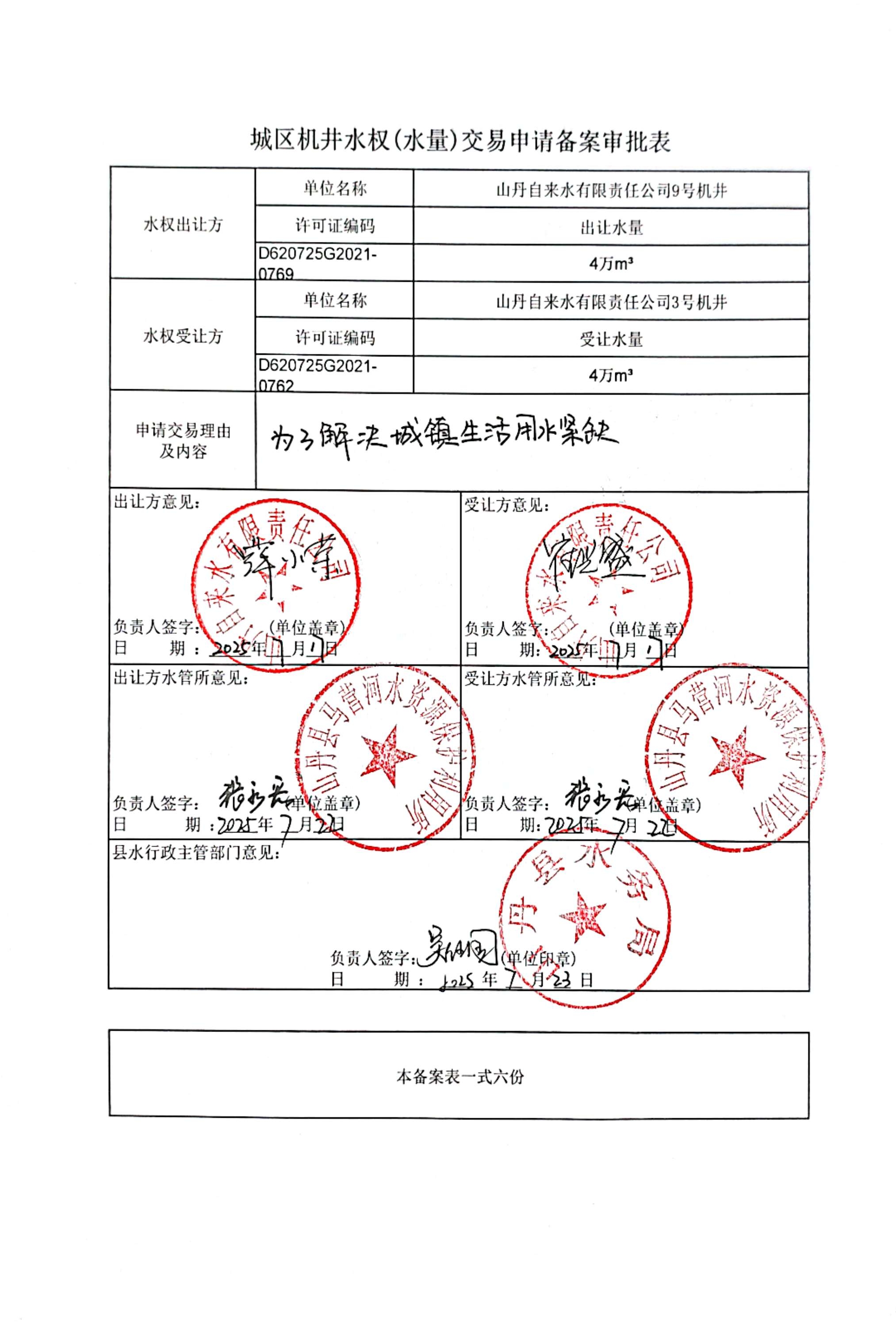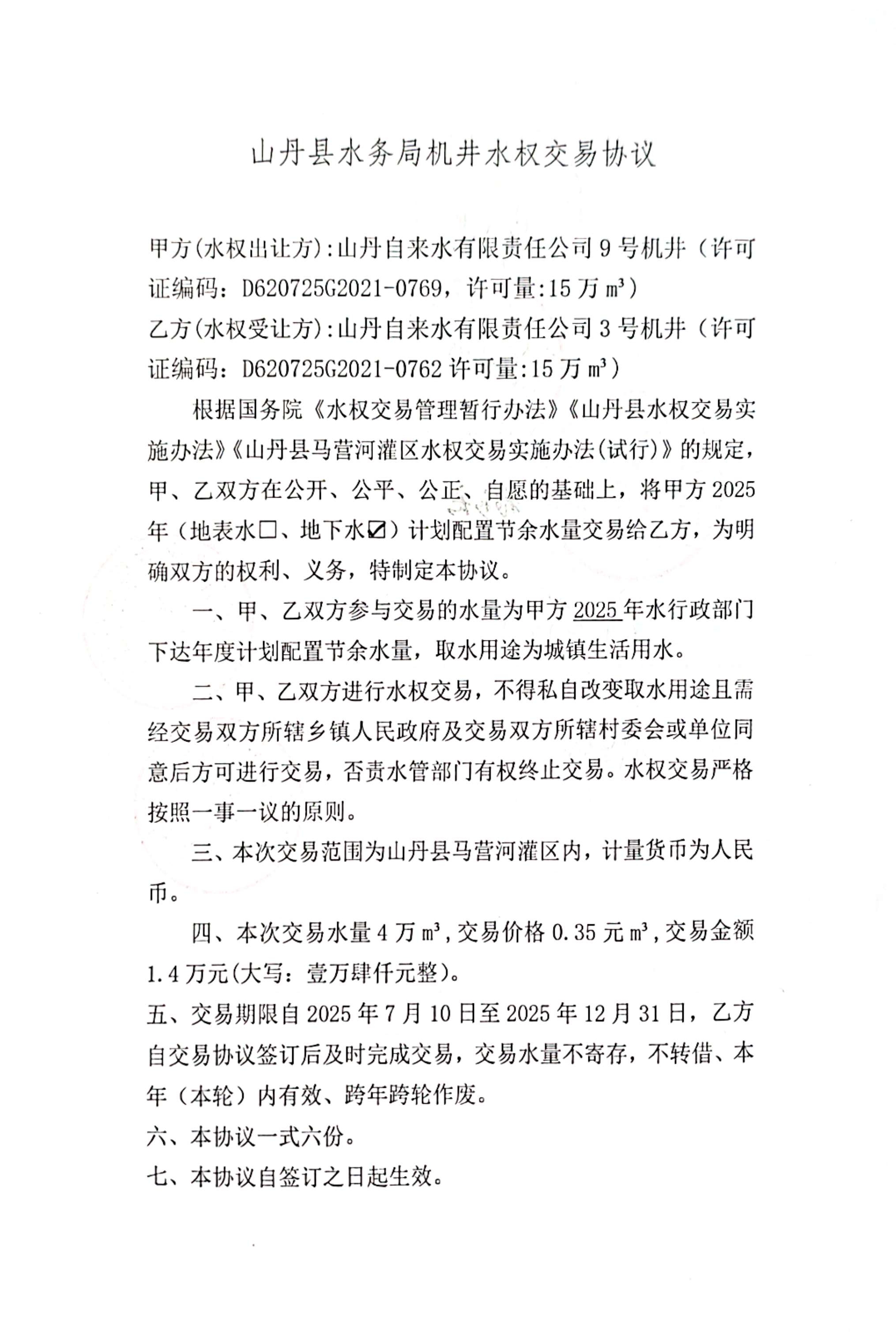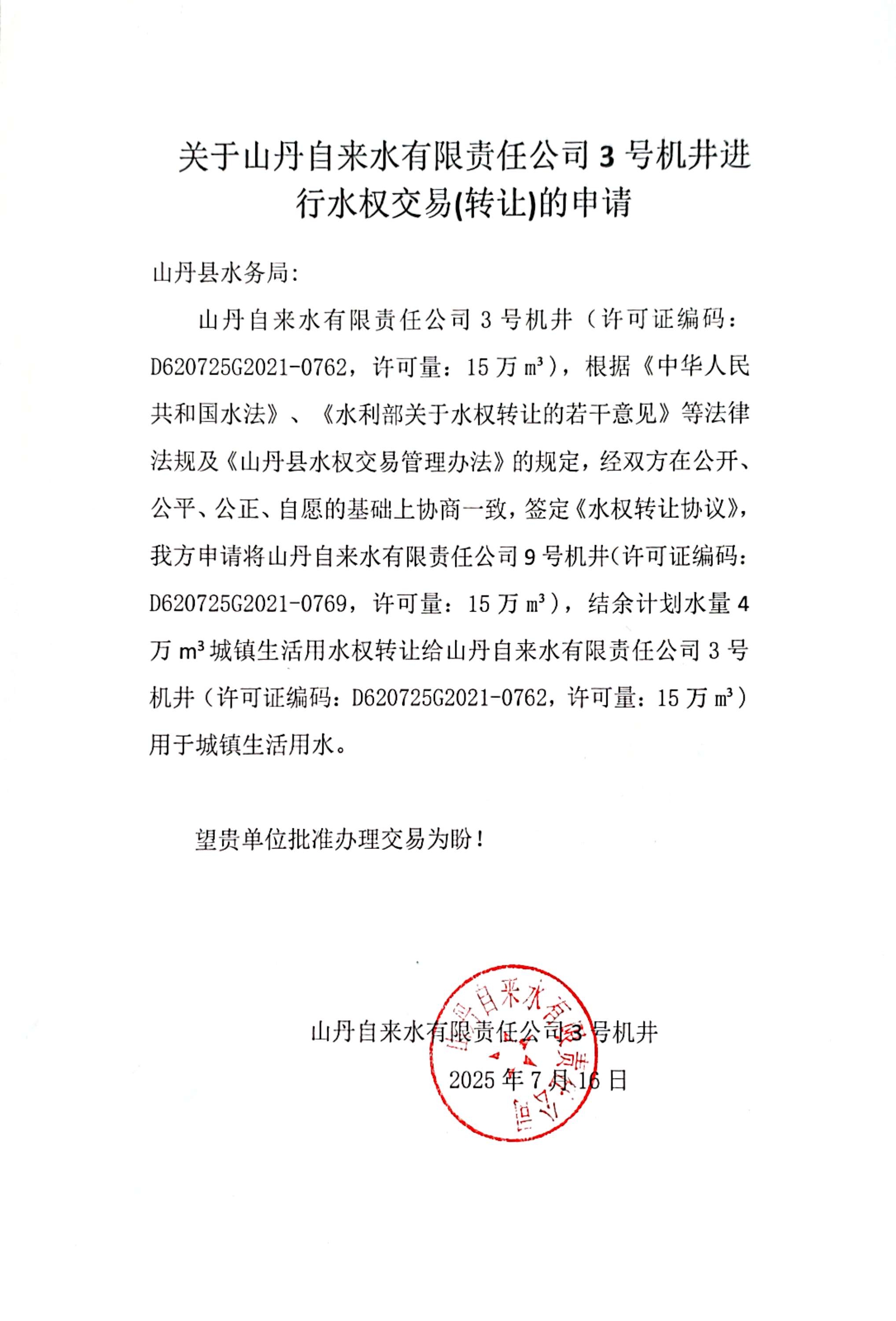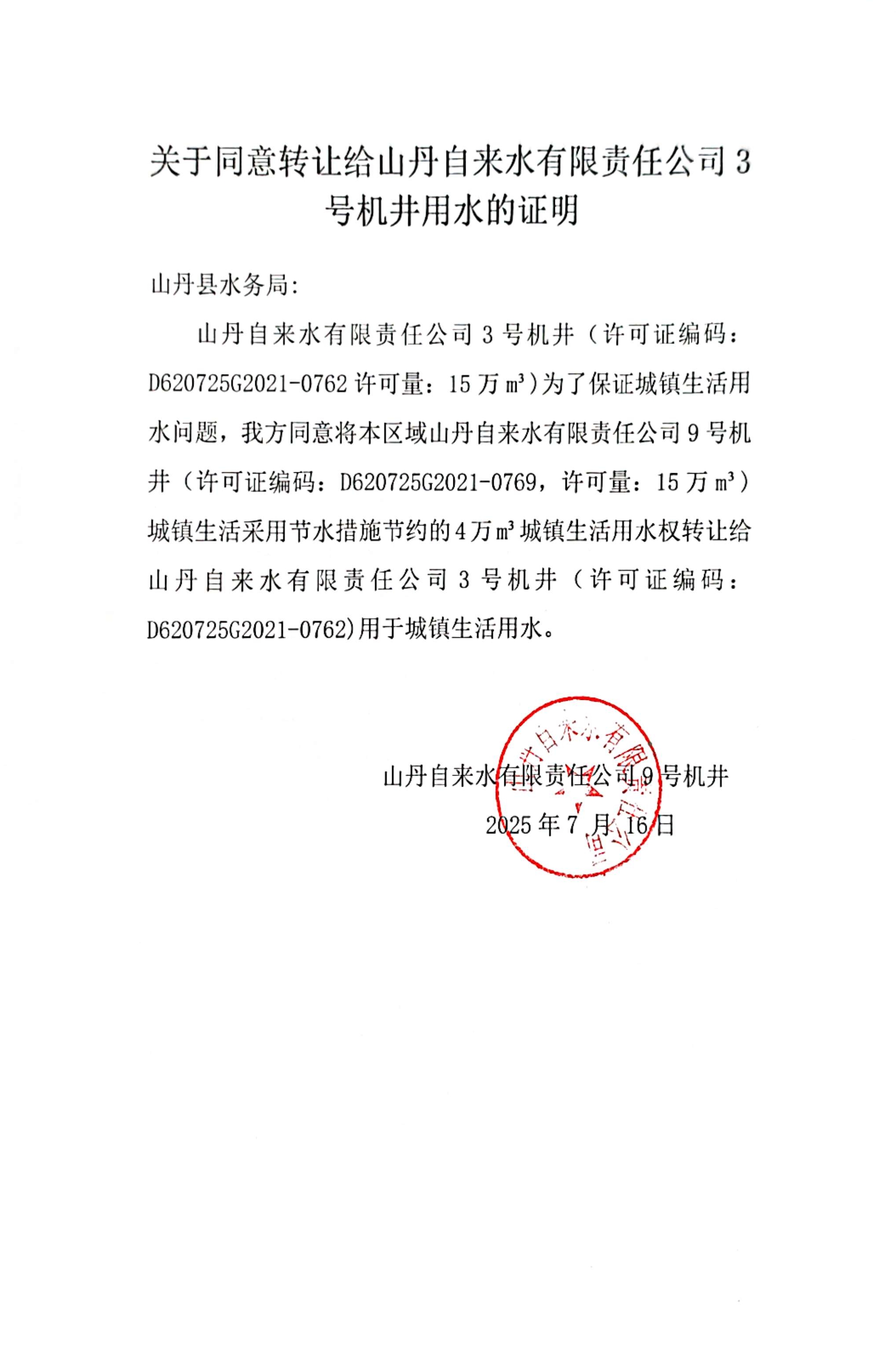 山丹自来水公司城镇生活用水供水井9号机井转让3号机井