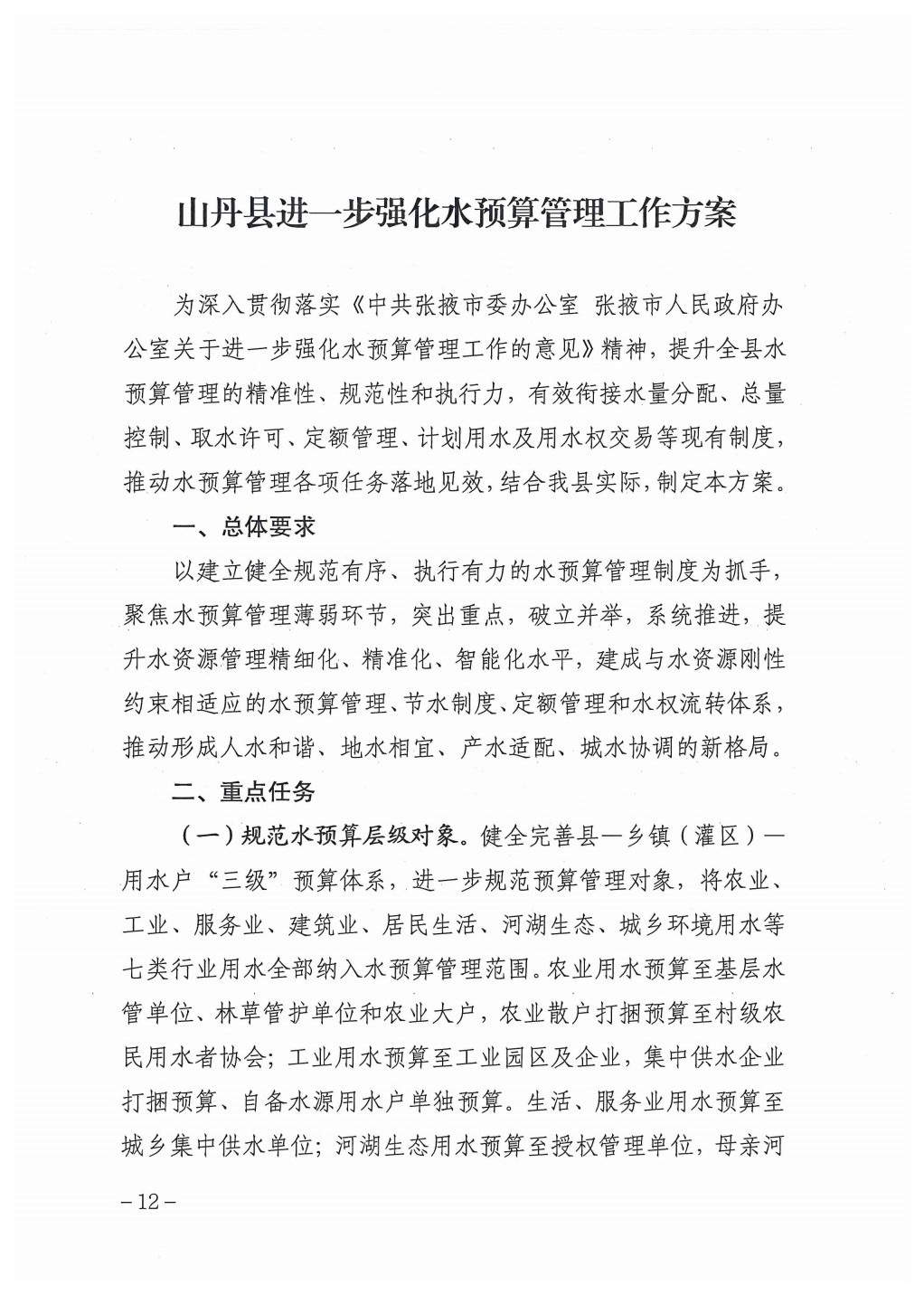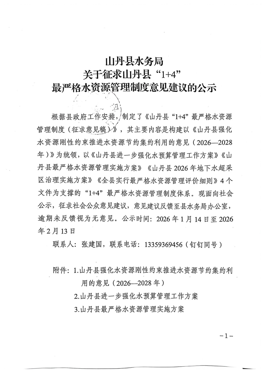 山丹县水务局关于征求山丹县“1+4”最严格水资源管理制度意见建议的公示