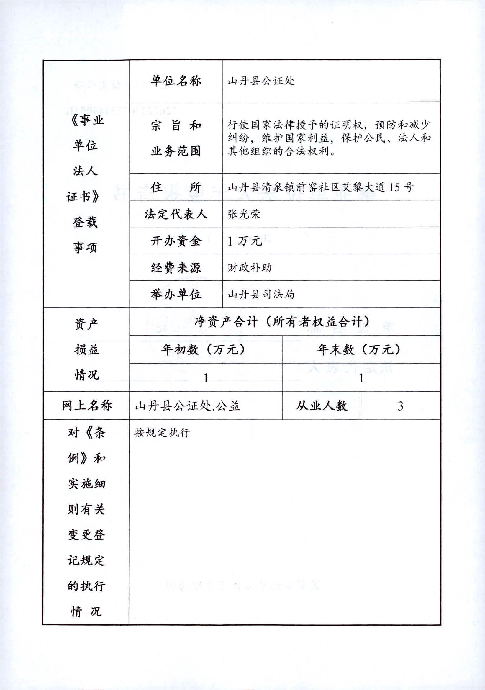 2024年度山丹县公证处事业单位法人年度报告书