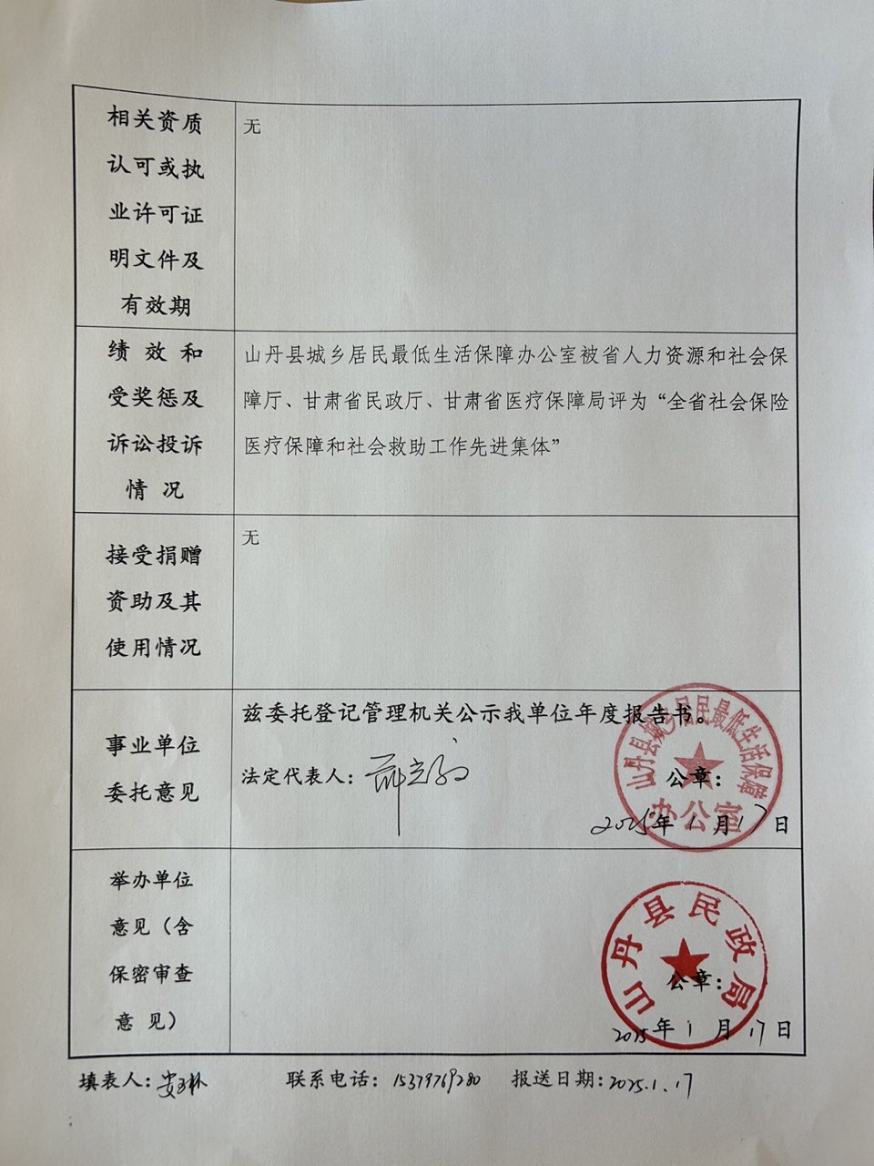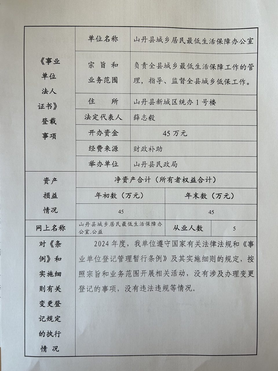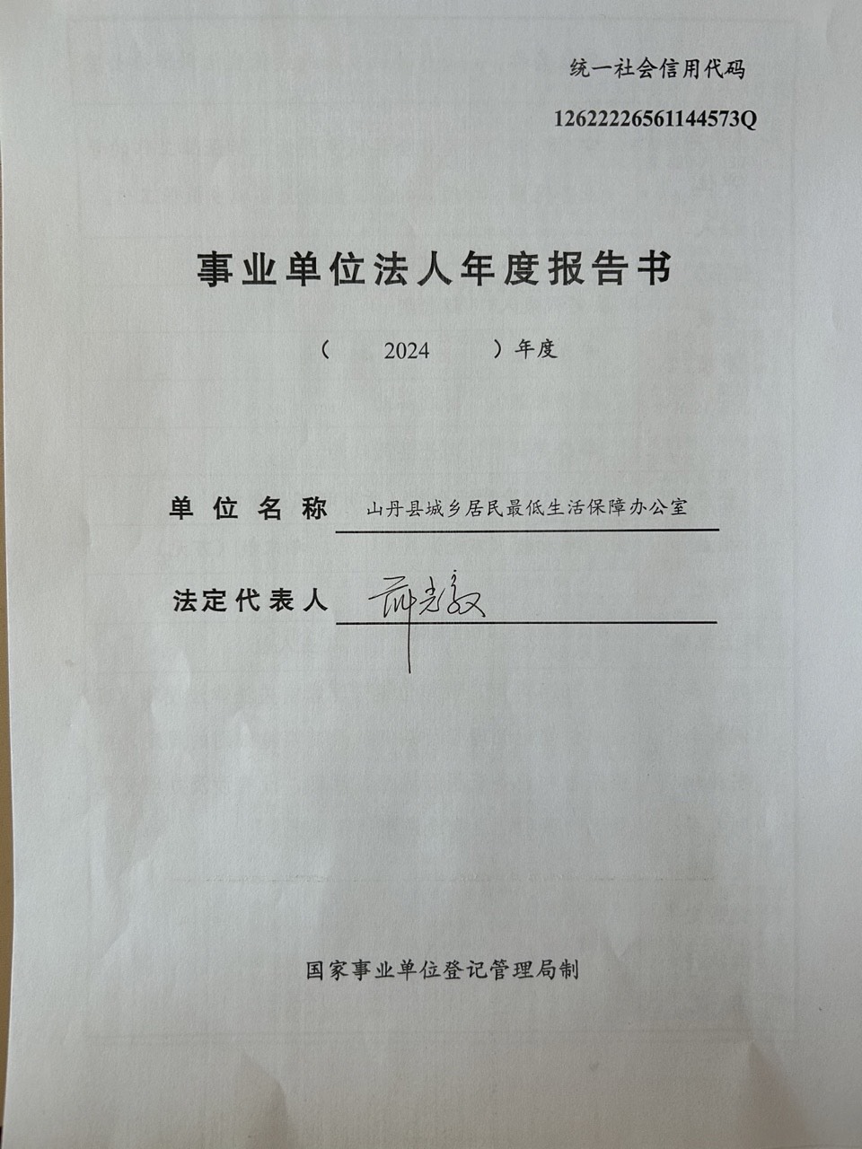 2024年度事业单位法人年度报告书(山丹县城乡居民最低生活保障办公室)