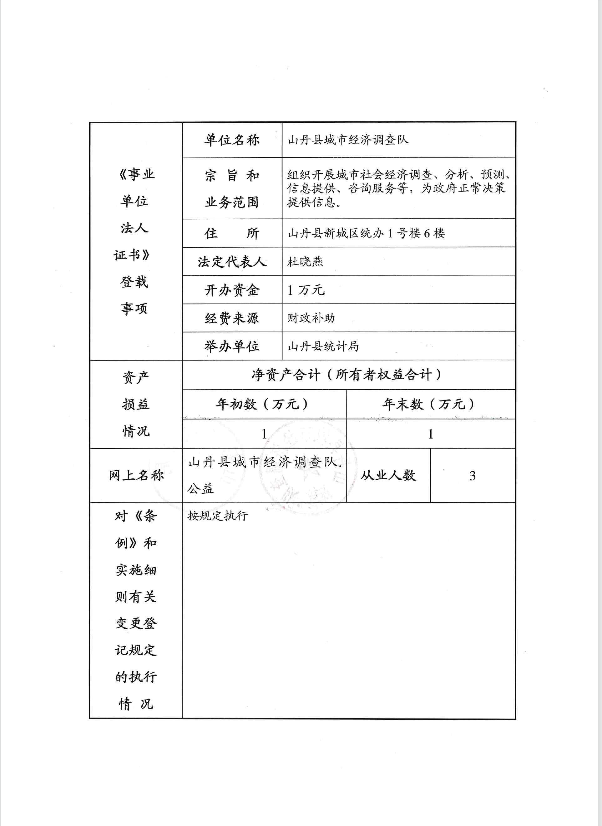 事业单位法人年度报告书(山丹县城市经济调查队)